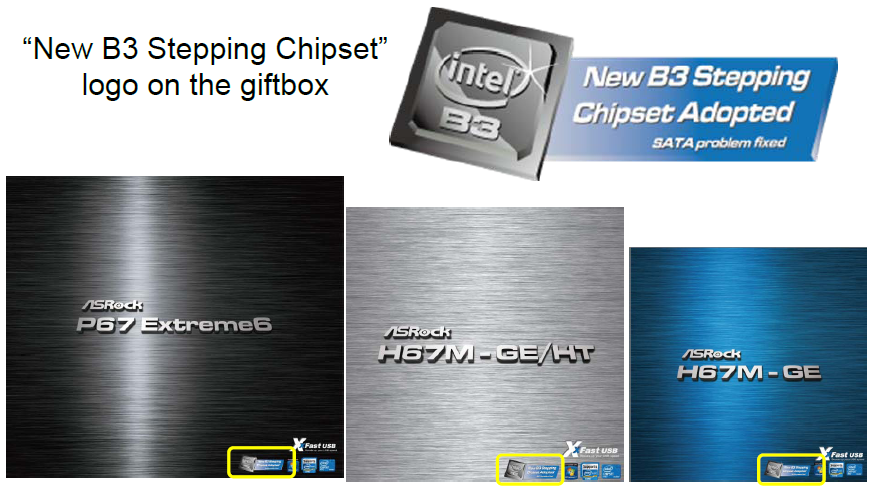 Intel è subito intervenuta, sottolineando che a breve una successiva revision (B3) del controller avrebbe fixato i problemi riscontrati. Questa revision è ora in mano ai produttori di schede madri, i quali stanno provvedendo ad installarli sui propri prodotti. Ma come individuare una scheda madre dotata di chipset B3 da una precedente?