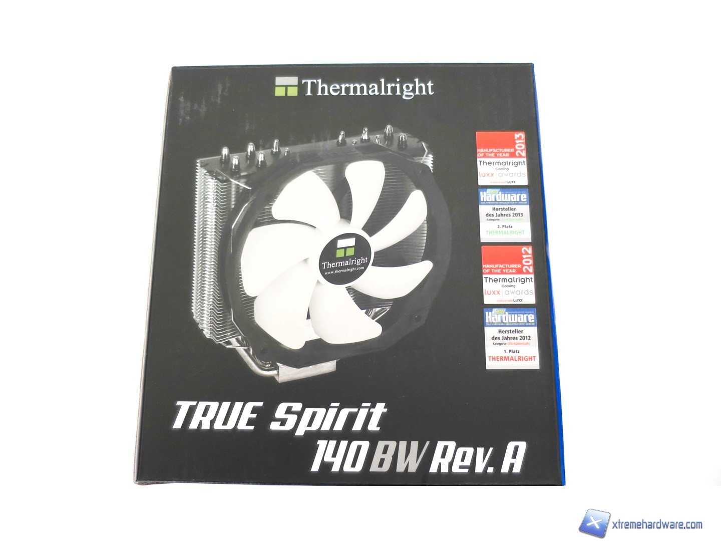 Al solito il Thermalright True Spirit 140 BW Rev.A è ospitato insieme al relativo bundle nella classica confezione di cartone dei precedenti modelli e sulla quale sono riportate alcuni immagini illustrative e le specifiche nonché caratteristiche del prodotto.