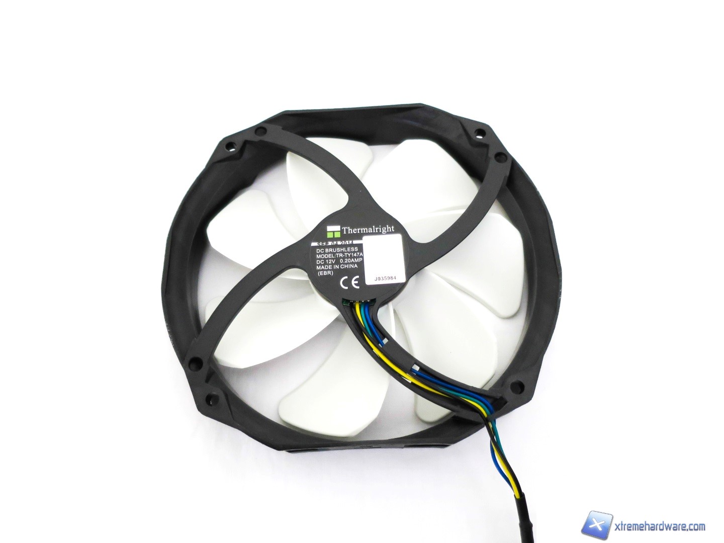 Come visto con il Thermalright True Spirit 140 BW Rev.A, viene fornita in dotazione una classica ventola da 140mm modello Thermalright TR-TY147, il modello forse più utilizzato nella gamma di dissipatori a torre di Thermalright. Tale ventola come abbiamo già visto è molto funzionale e valida considerando i suoi RPM massimi che si attestano a 1300 e la rumorosità generata di 21dBA al massimo dei giri. All’atto pratico sarà davvero silenziosa. Infine, tale modello riesce a garantire un valore di 73,6CFM al massimo dei giri grazie anche al suo buon diametro. La ventola sul piano estetico adotta il classico schema nero e bianco rispettivamente per frame e pale. Per altri modelli viene utilizzata anche la colorazione rossa/arancione (ad esempio con il Silver Arrow SB-E Extreme) o il classico colore beige/grigio (Silver Arrow SB-E e IB-E o Archon SB-E X2 e IB-E X2). Non dimentichiamo che le 7 pale Silent Torpedo che la compongono non hanno la classica forma netta ma hanno un design aerodinamico il quale riduce la frizione consentendo un flusso uniforme e stabile. La ventola è dotata anche della tecnologia EHFB (Enhanced Hyper-Flow Bearing) che assicura RPM stabili e una vita prolungata della ventola stessa.