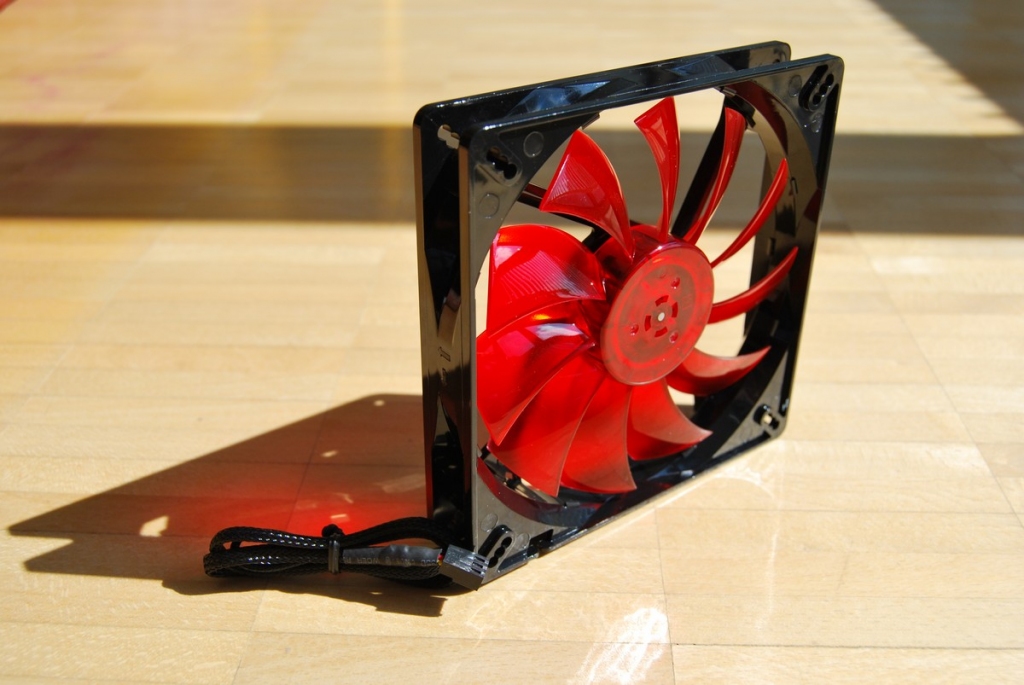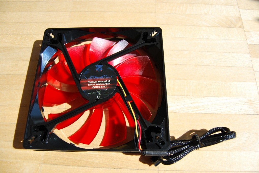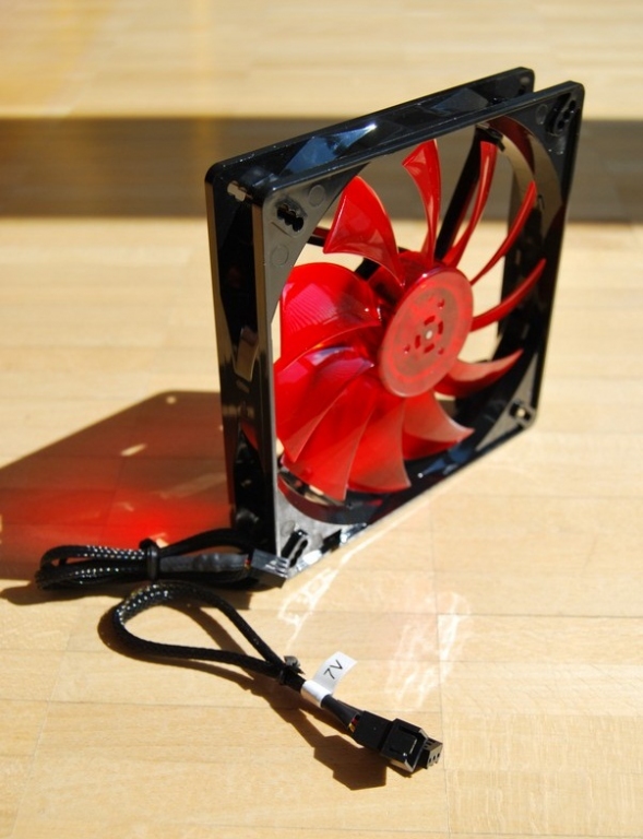 L’estetica di questa ventola è decisamente gradevole, la scocca è nera mentre le pale sono rosse semi-trasparenti. Al centro della ventola si può intravedere il motore, con le caratteristiche bobine che generano il campo magnetico dello statore. A livello di qualità dei materiali, pur avendo un bell’aspetto lucente, la ventola sembra lasciare qualche dubbio sulla sua solidità. Anche il peso probabilmente contribuisce a questa inevitabile sensazione, evidente soprattutto per chi ha avuto modo di provare una ventola Noctua.