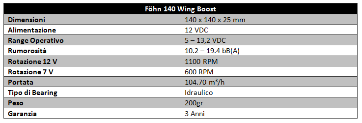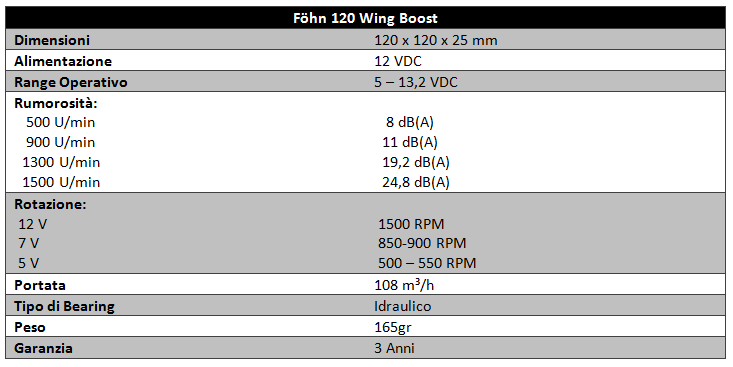 Dopo aver scritto le caratteristiche generali per le due ventole prodotte da Alpenföhn, andiamo a vedere più nel dettaglio le specifiche tecniche per entrambi i modelli. Esse sono riassunte nello scheda sottostante: