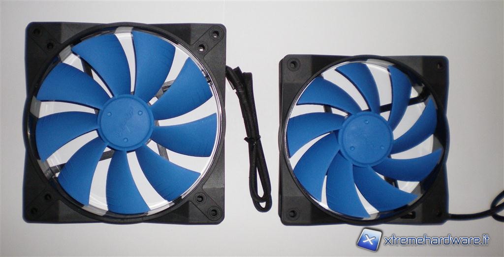 Dal punto di vista estetico la ventola si presenta con un frame di colore nero, costruito con una plastica di tipo semirigida, questo permette come già detto di ridurre le vibrazioni quando le ventole sono in funzione. Troviamo ben 9 pale per entrambi i modelli, le quali insieme al rotore centrale, sono di colore azzurro, conferendo alla ventola un aspetto molto gradevole. Al tatto si ha la sensazione di “morbidezza”.