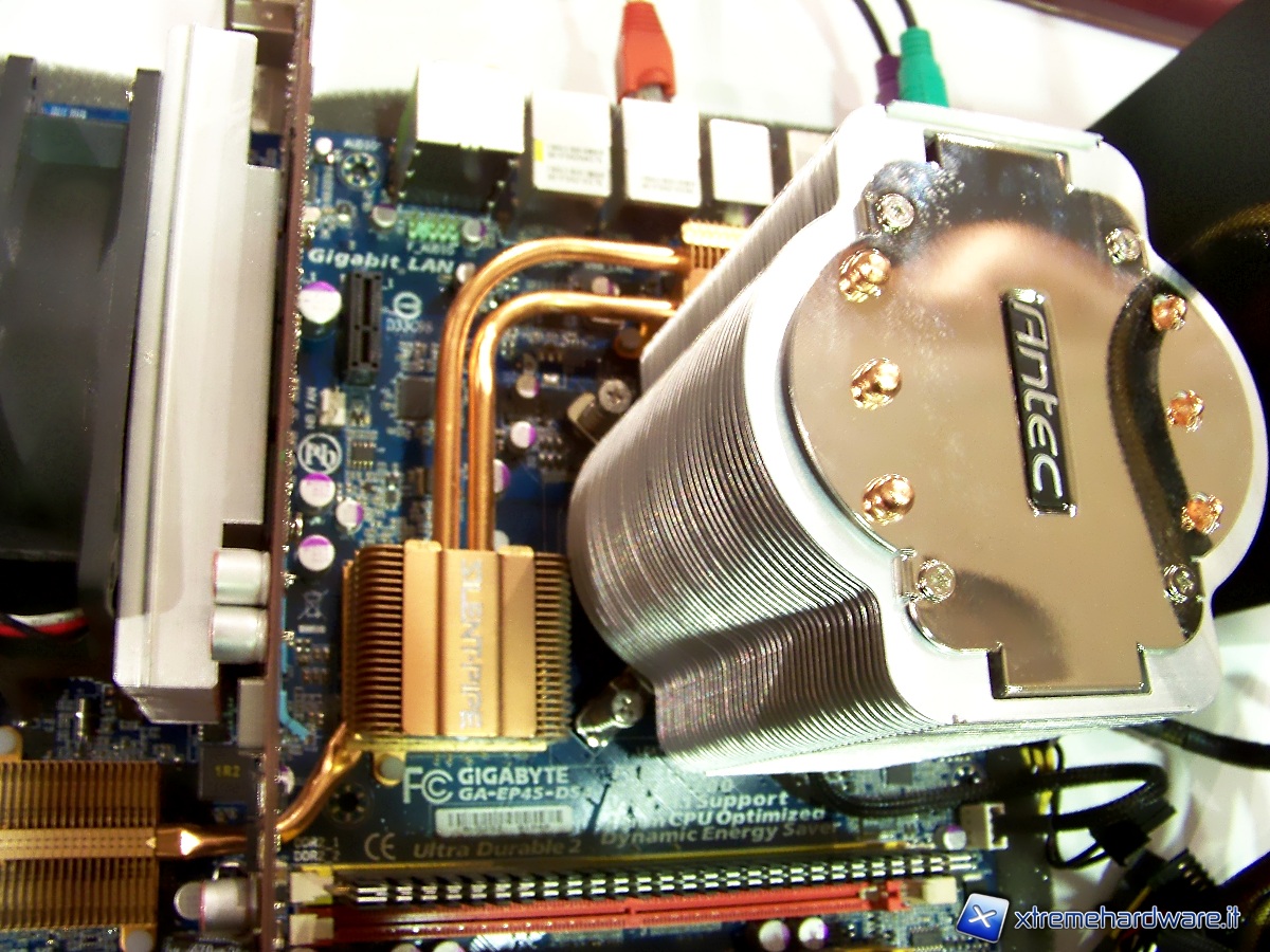 Il flusso d’aria della ventola oltre a raffreddare le numerose alette di alluminio investe anche le 3 heatpipe di rame permettendone un corretto raffreddamento.