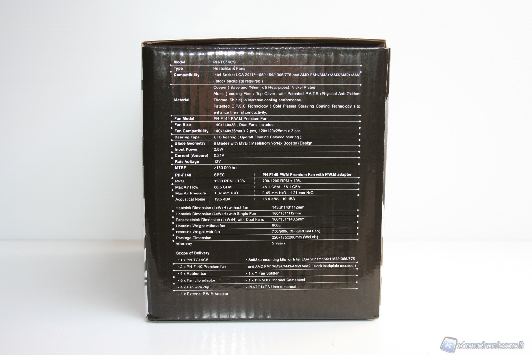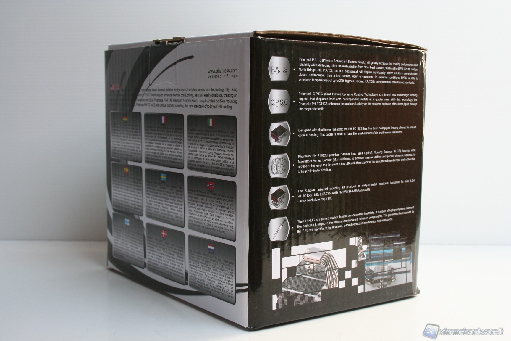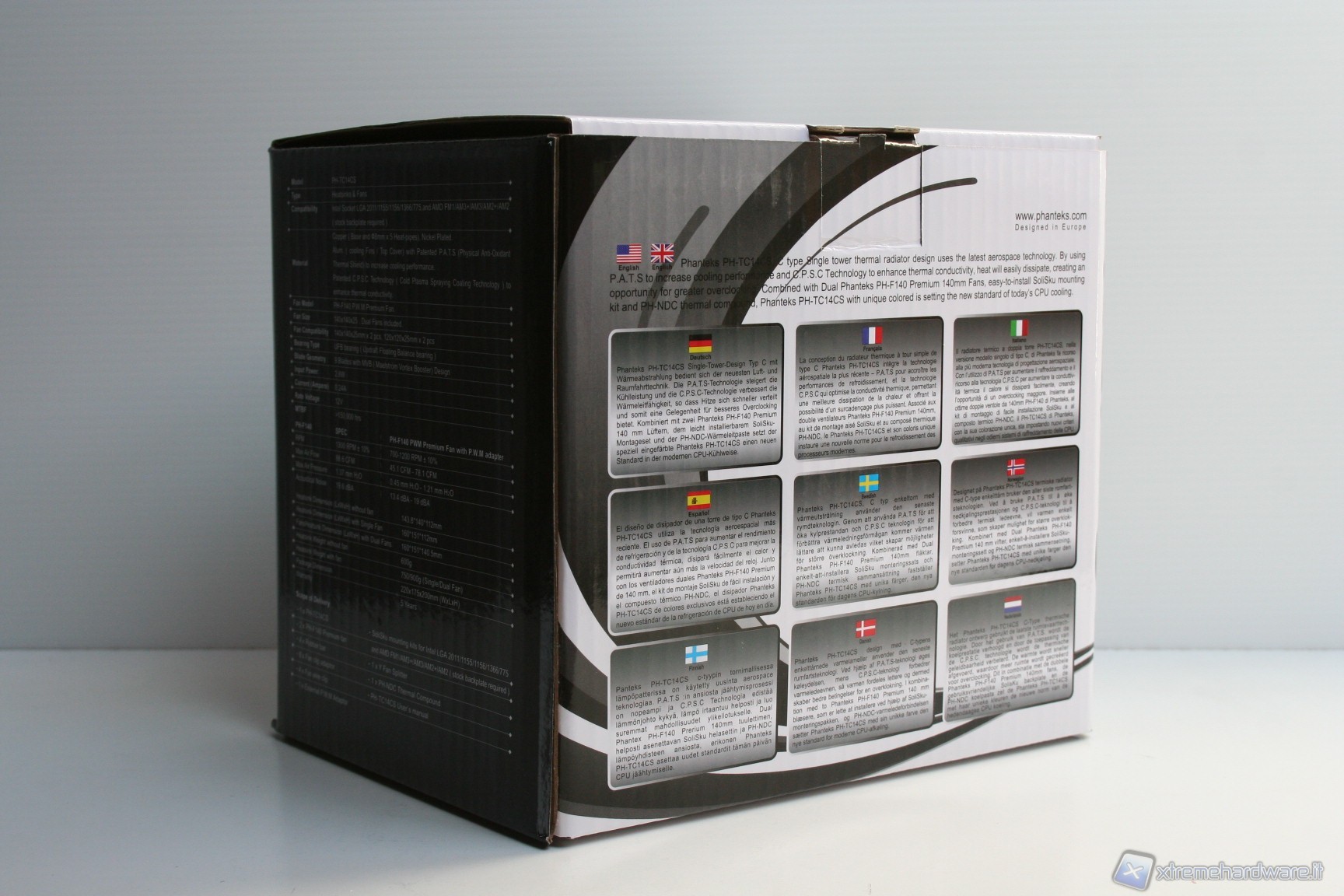 Il dissipatore è inserito in un ottimo confezionamento con sfondo bianco/nero e finitura lucida ed è veramente notevole il numero di informazioni riportate sulla confezione esterna. E’ apprezzabile nella parte posteriore la presenza di una descrizione in nove lingue, tra cui l’italiano. Nella parte sinistra, invece, sono presenti le features caratteristiche del modello, corredate da ottime immagini illustrative. Una volta aperta la scatola, il dissipatore è correttamente imballato e non ci saranno problemi all’atto del trasporto.