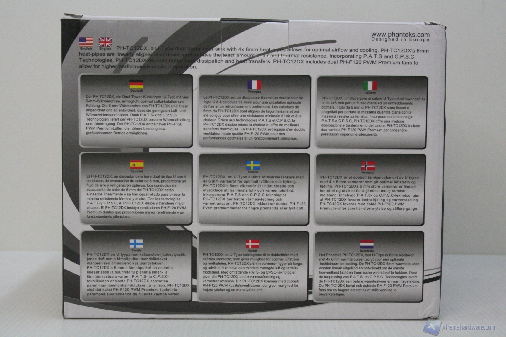 Per quanto riguarda la confezione, non ci sono novità particolari rispetto alle precedenti. E’ buona l’esposizione delle fotografie, delle differenti versioni e delle specifiche tecniche, oltre alle caratteristiche peculiari del modello. L’imballo è come al solito eccellente, in polietilene espanso PET , che conferisce una protezione maggiore ma soprattutto una durata maggiore del polistirolo. Il manuale in dotazione consiste in un grande foglio multilingua, ottimo e curato mentre il bundle, similmente alle soluzioni precedenti del marchio olandese, è semplicemente il massimo che possiate chiedere. Comprende anche un tubetto di eccellente pasta termica PH-NDC.