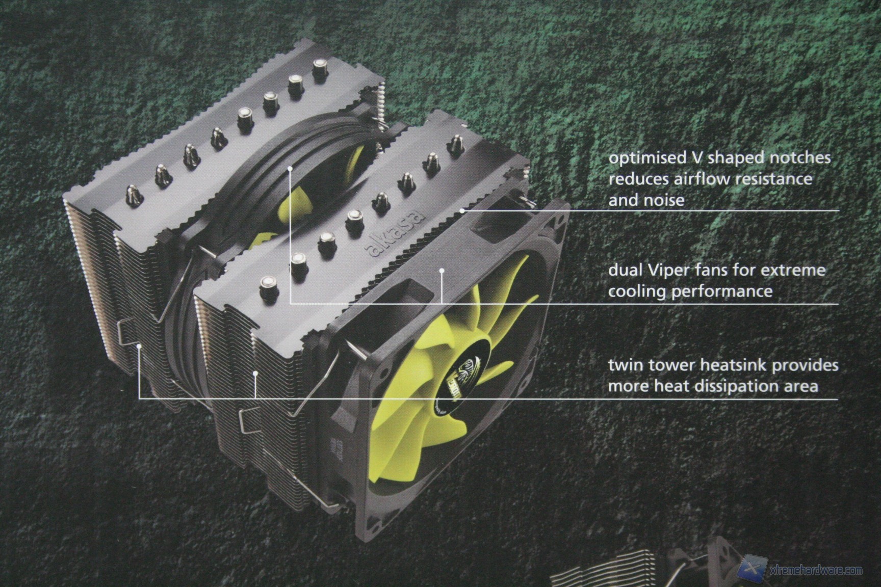 La confezione è davvero molto curata e presenta anche una comoda maniglia superiore per il trasporto. Il bundle è ottimo in quanto sono presenti due ventole Viper S-Flow, un tubetto di pasta termoconduttiva proprietaria e connettori dedicati per configurazioni multi ventola. L’imballo è altrettanto valido.