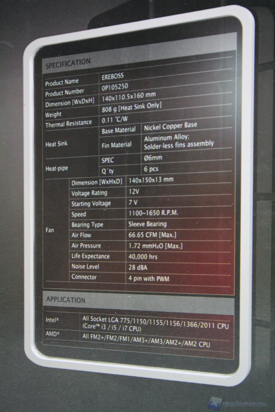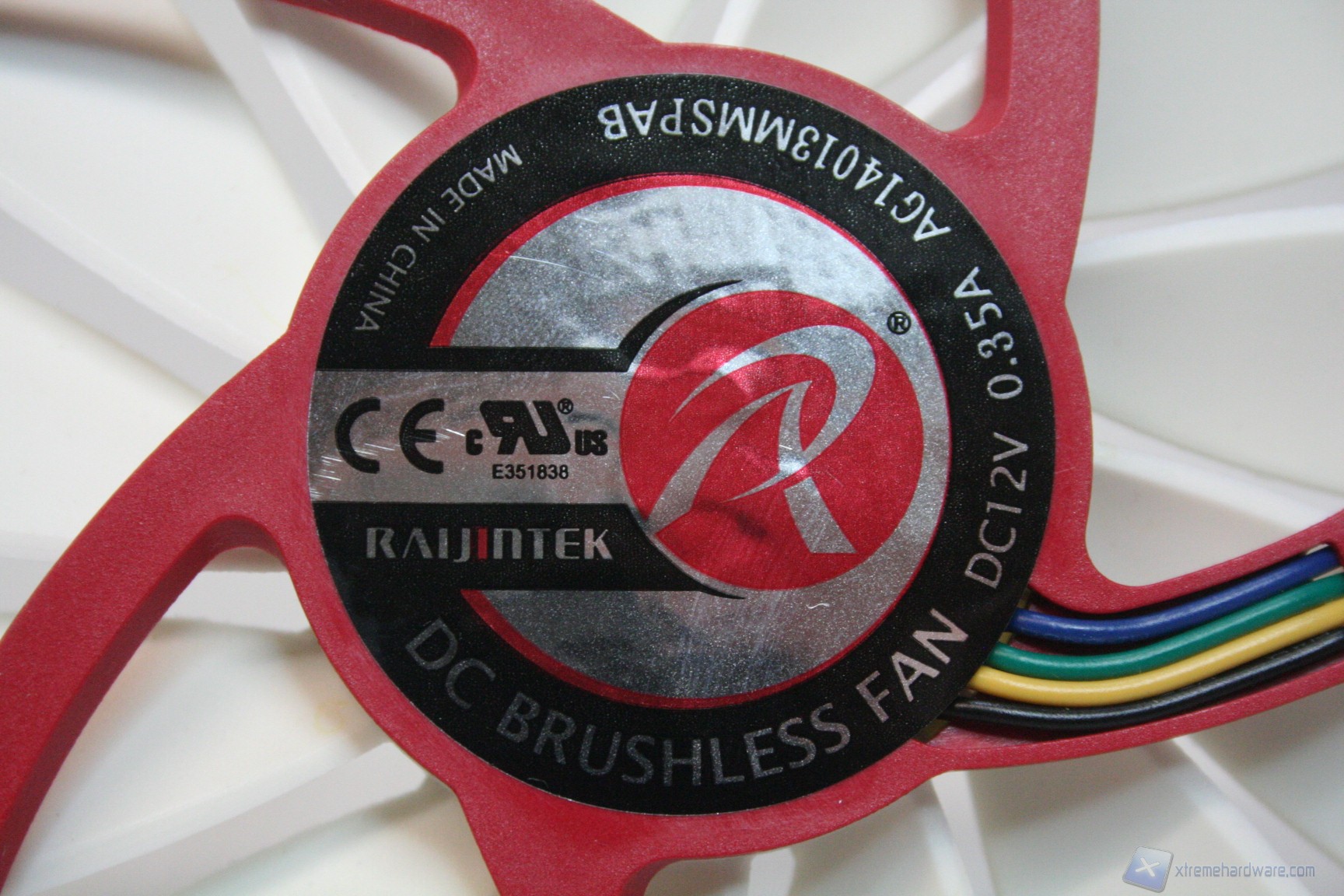 E’ presente il modello AG14013MMSPAB. Il diametro è elevato, 140mm, mentre lo spessore è ridotto, pari a 13mm. Ciò permetterà un’elevata compatibilità e una rumorosità ridotta, ma CFM conseguentemente minori a parità di RPM, se rapportati a modelli aventi uno spessore di 25mm (l’attuale standard di progettazione). La silenziosità, a 1650 RPM è soddisfacente, non sarà una ventola eccessivamente molesta, anche se ovviamente non può essere classificata come silenziosa. Presenta un leggero ticking a bassi RPM, però nulla di sostanziale. Le performance sono buone e l’accoppiata con questo dissipatore è pressoché perfetta. Lo sleeving è eccellente e la ventola è PWM.