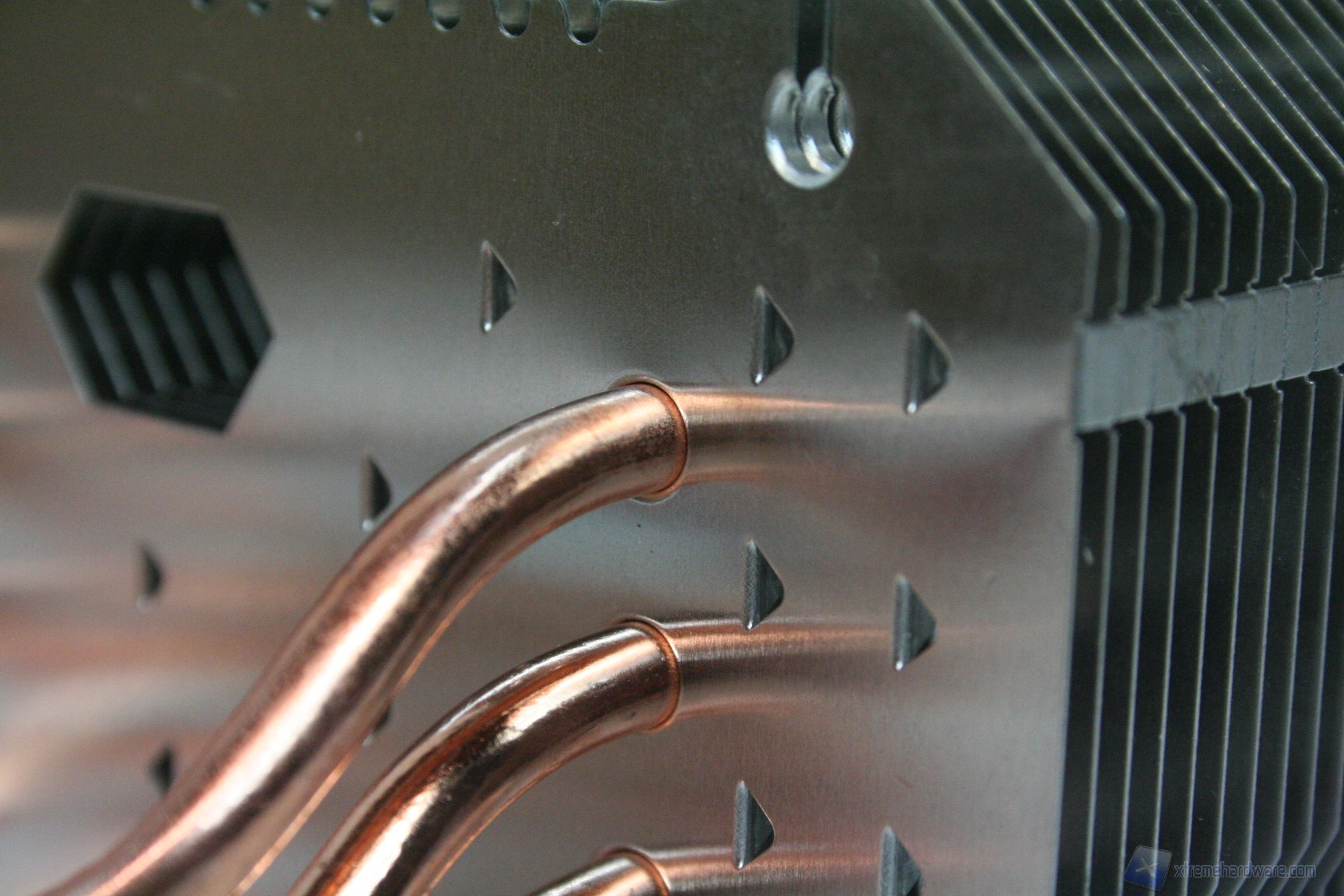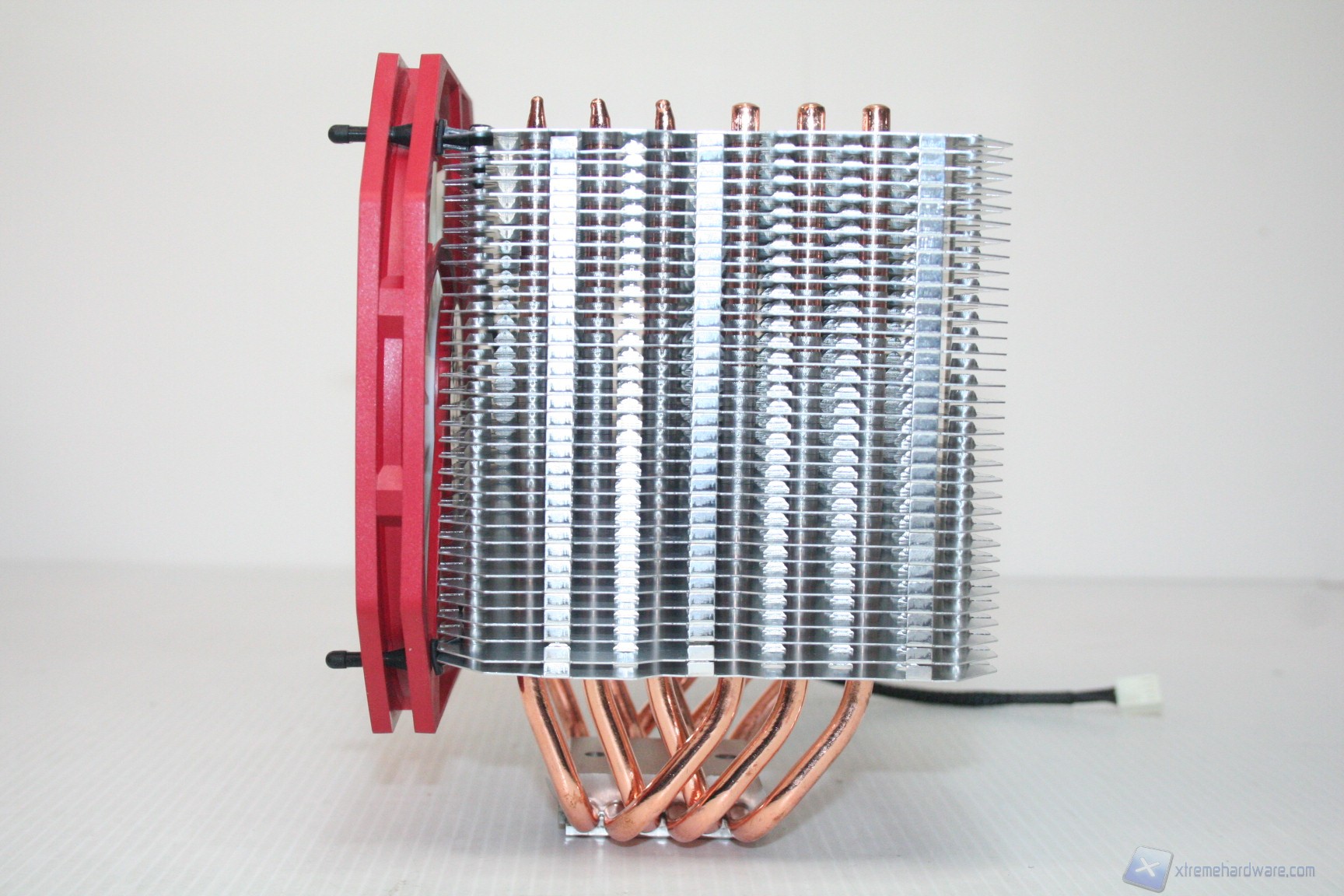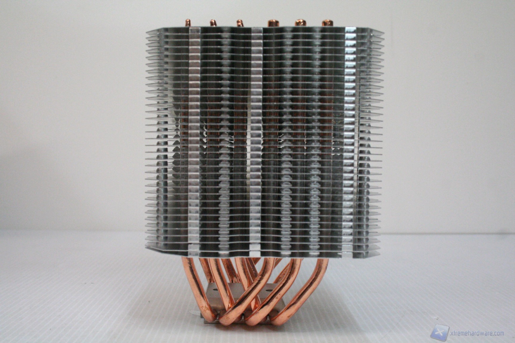 La struttura fa parte della classica tipologia a singola torre di raffreddamento, sebbene però in questo caso abbia una elevatissima profondità. E’ costituito da un unico corpo dissipante attraversato da 6 heatpipes ad “U” con diametro di 6mm, distribuite in fila lungo la direzione del flusso d’aria, quindi sovrapposte. Al centro sono presenti dei motivi che conferiscono un aumento della superficie dissipante (necessaria per migliorare il profilo di ventilazione interno in associazione alla zona morta di ventilazione, derivante dal diametro elevato del motore), ed anche due fori per l’installazione, uno dei quali all’interno dei plate sovrapposti, il che implica che per l’installazione sarà necessario un cacciavite a testa molto lunga. Vi mostriamo una fotografia del cacciavite che consigliamo di utilizzare: