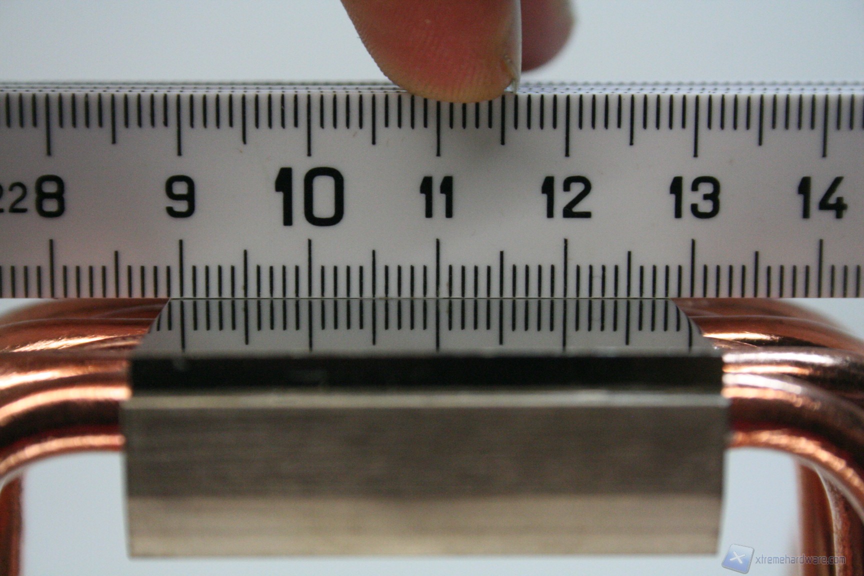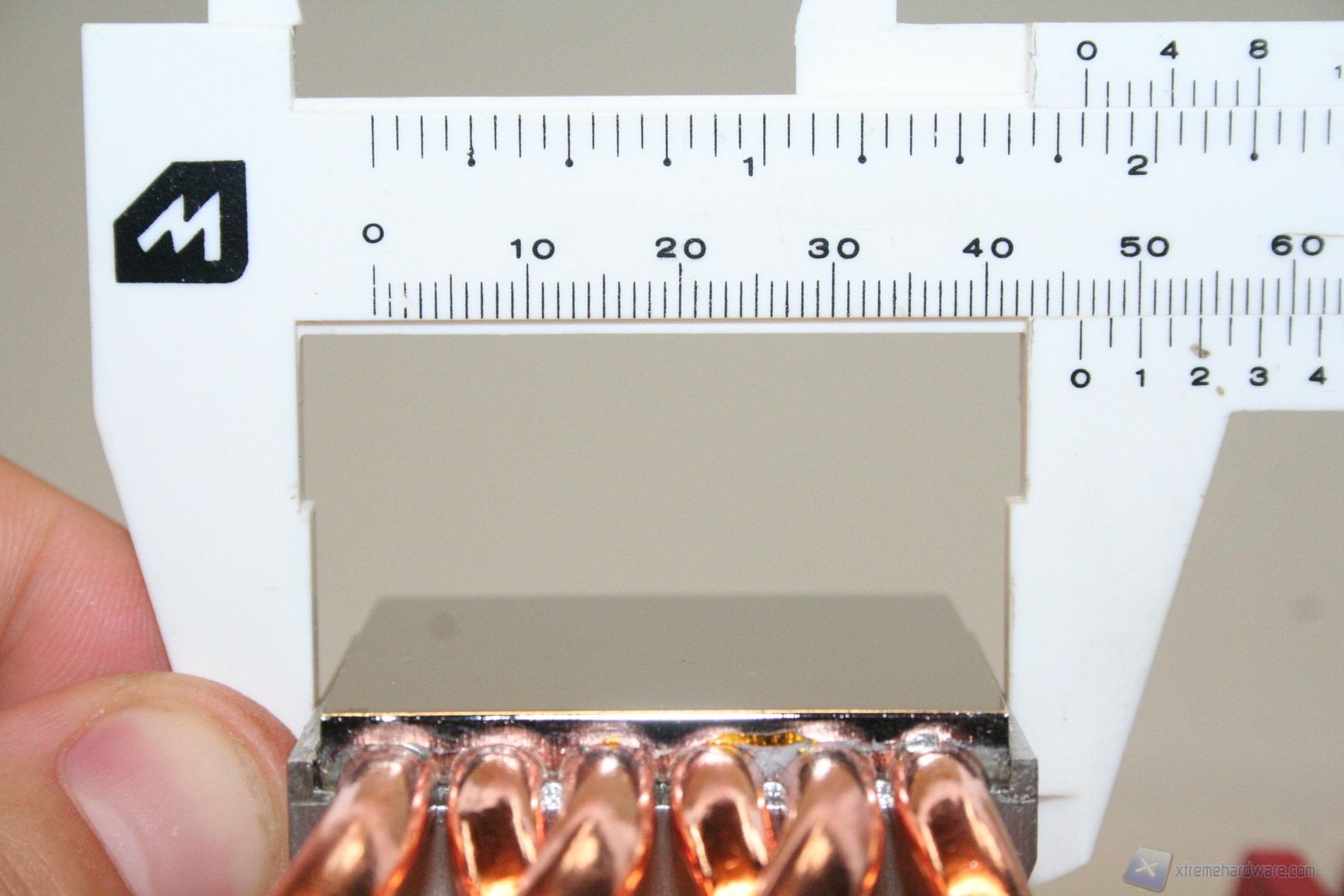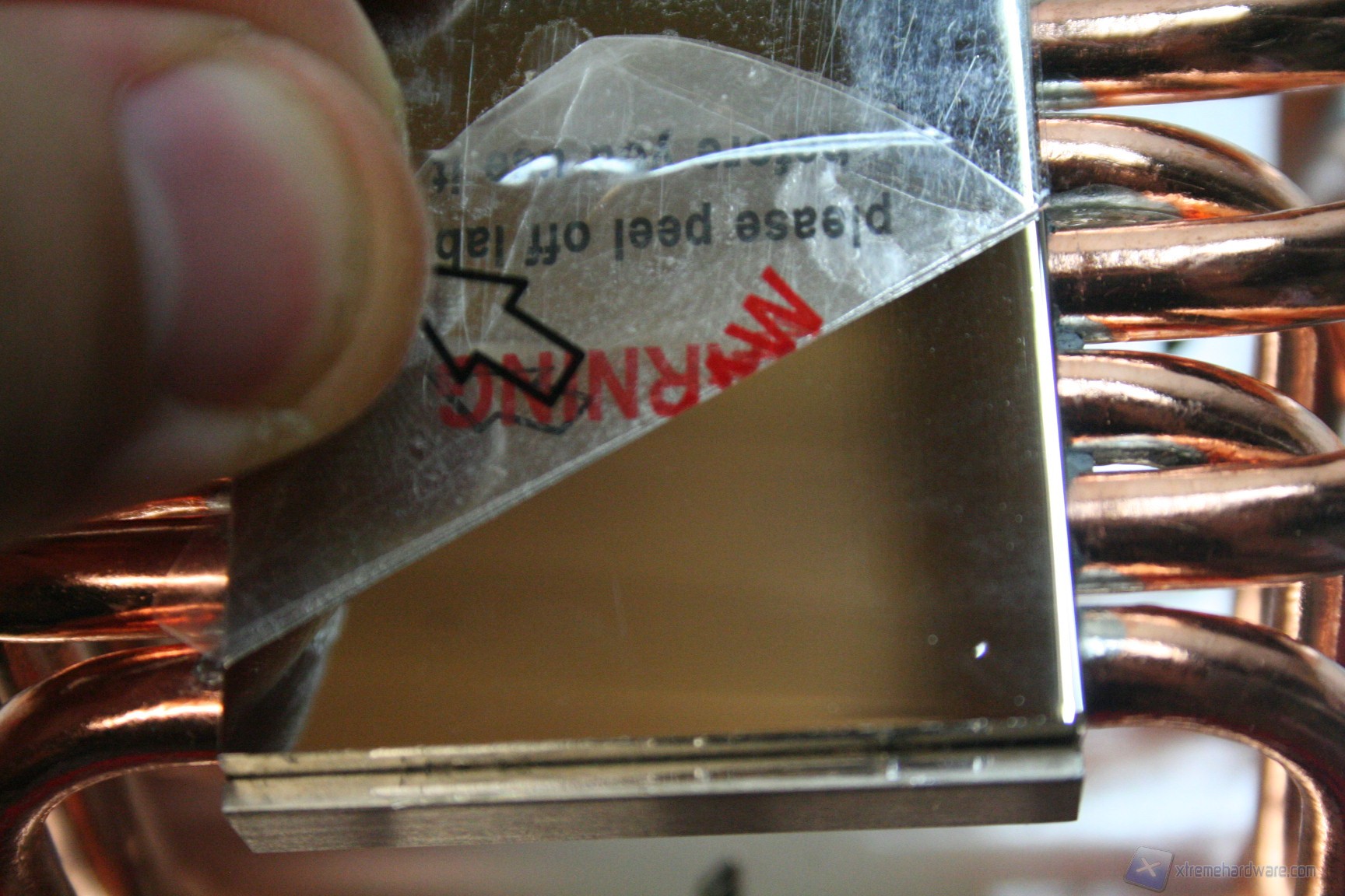 La base è leggermente convessa, ma di ottima qualità: è lappata a specchio, non sono presenti segni di lavorazione al tornio e le saldature con le heatpipe sono evidenti, quindi è una buona notizia. La base convessa non è consigliabile sul socket LGA 2011, in quanto il problema della deformazione a “banana” del socket non è più presente, al contrario del sistema 1155-56/1366, dove invece un minimo di convessità è consigliata.
