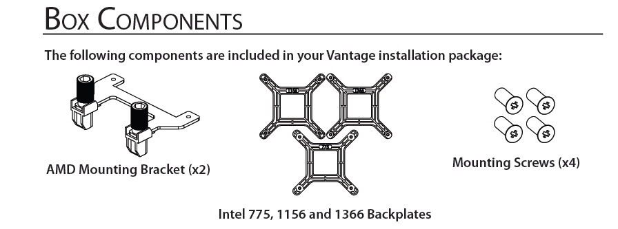 Scelto il tipo di socket che è dotato la nostra scheda madre ed adattato la staffa di bloccaggio, tocca installare nel retro della scheda madre la piastra posteriore in base la nostro tipo di socket (da effettuare solo per cpu INTEL), fatto questo procediamo a fissare il radiatore con il suo supporto alla parete posteriore del nostro case. Ultimata questa fase andiamo a posizionare il cuore del VANTAGE sulla cpu e stringere bene le viti ad incrocio fino ad arrivare al bloccaggio corretto.