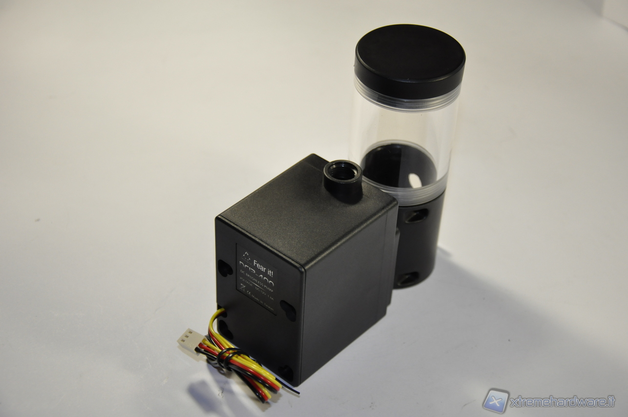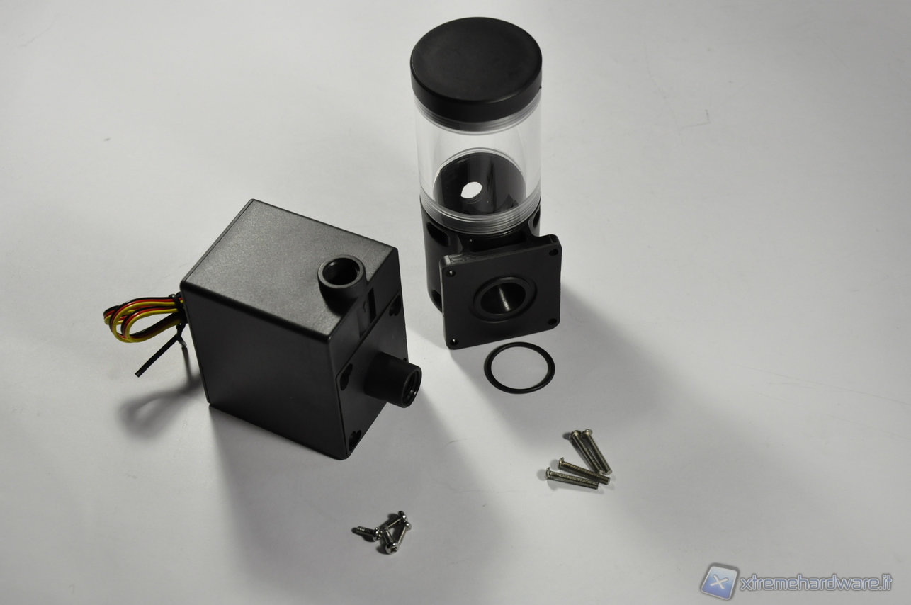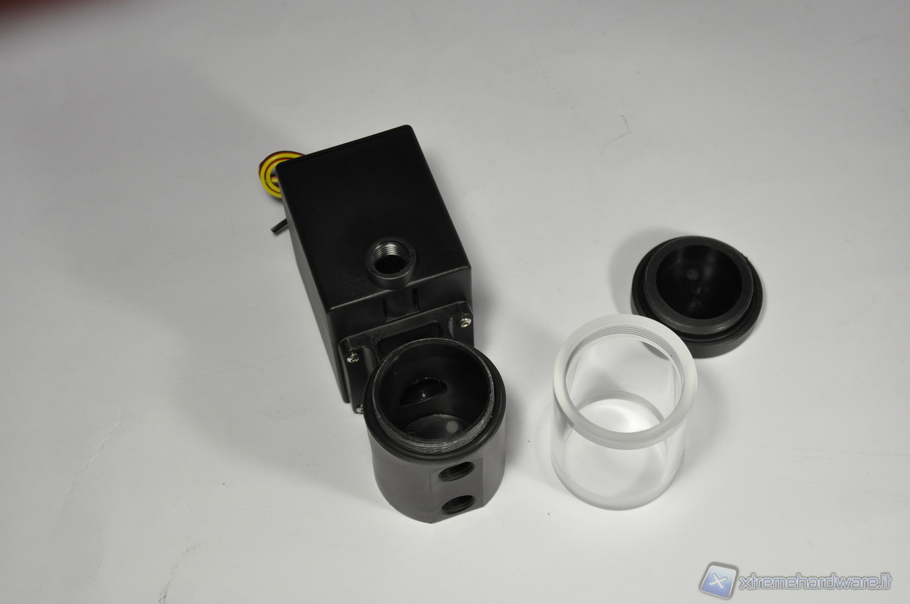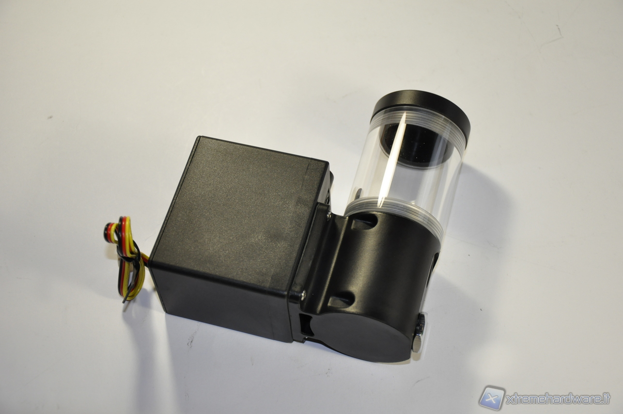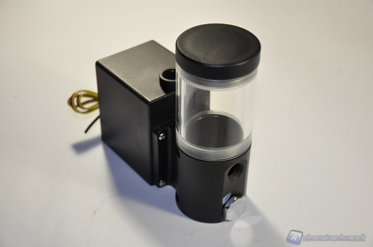 Si noti altresì che il Reservoir della EK ha due fori per il ritorno del liquido, a tutto vantaggio del flusso di ritorno. Si può pensare ad utilizzare la Phobya DC12-400 & EK-Reservoir in un circuito sdoppiato CPU/VGA, ma in tal caso è necessario l’acquisto di un raccordo a Y per sdoppiare anche il flusso di mandata del liquido in uscita dalla pompa, dato che quest’ultima è munita di un solo foro di uscita.