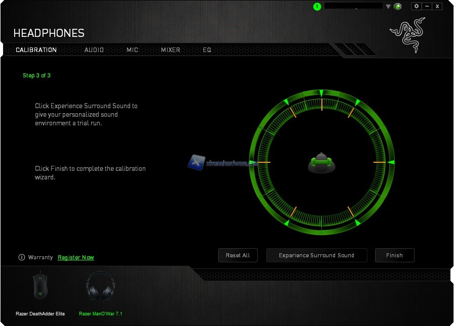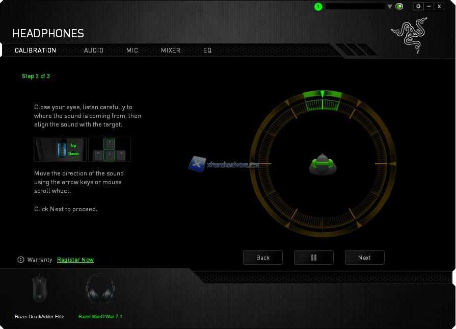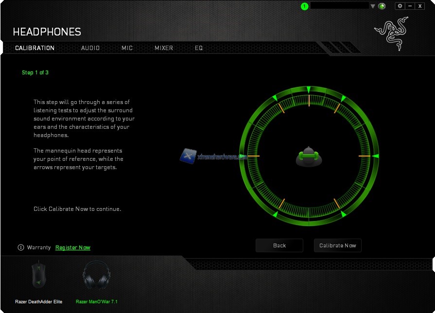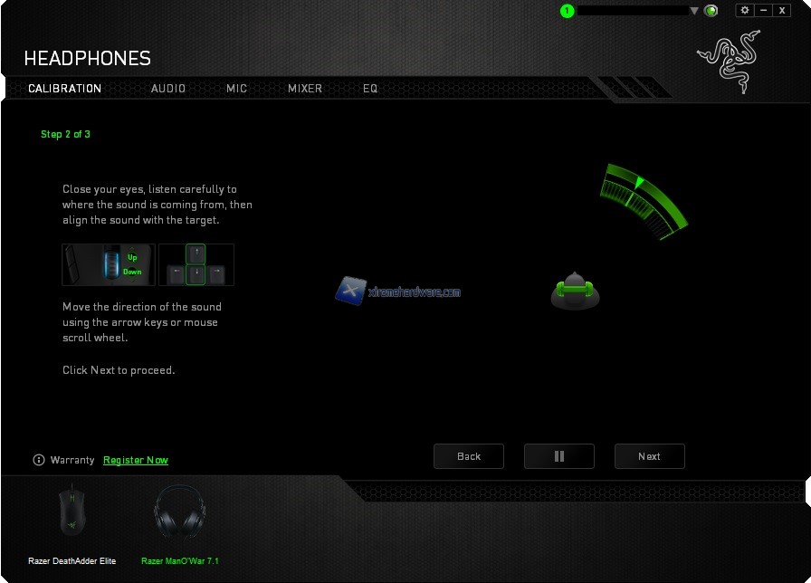 Bene, avviato il programma ci troveremo immediatamente dinanzi il primo Menù ‘’Calibration’’ dal quale sarà facile intuire come potremo calibrare il volume virtuale delle cuffie. Con un Wizard illustrativo ed esplicativo avremo modo di settare uno dei sette ‘’campi’’ volume che andranno a comporre il suono Surround delle ManO’War. Ognugno di noi avrà dunque ampia scelta e libertà di personalizzare la configurazione sonora delle cuffie.