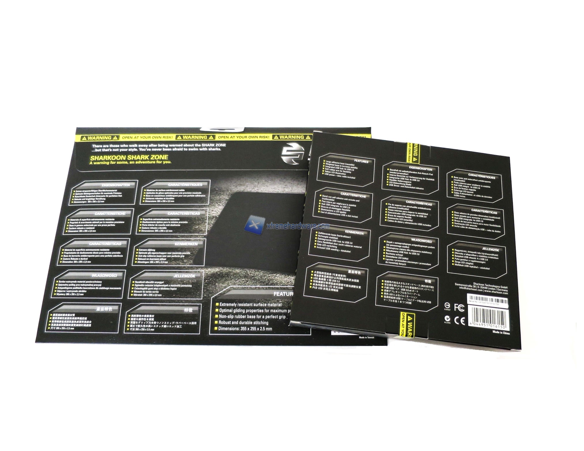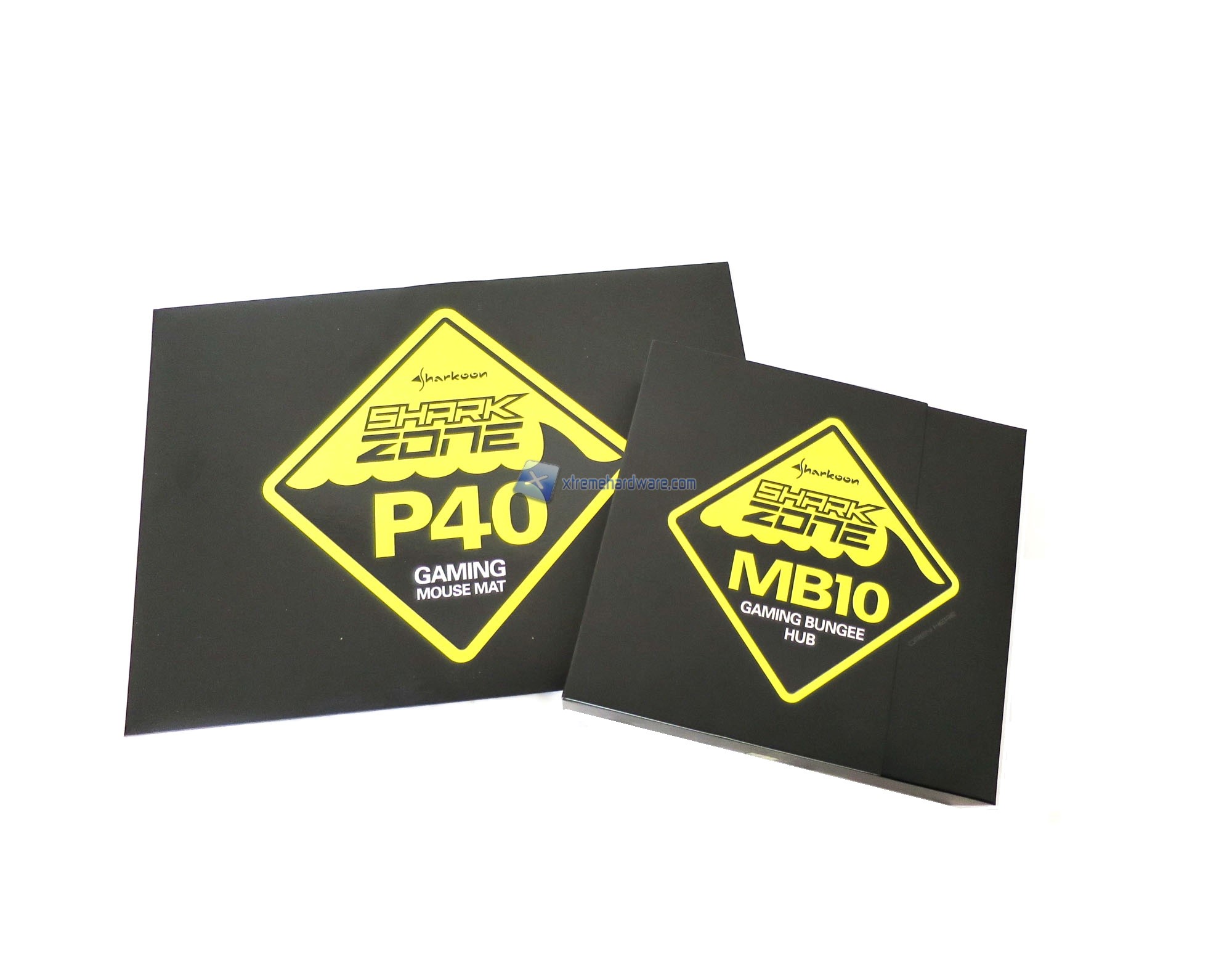 Partiamo dalle confezioni dei due prodotti. Lo Sharkoon MB10 sarà ospitato insieme al relativo bundle in una confezione di cartone con una sagoma interna di plastica semi rigida. Il mousepad Sharkoon P40 invece lo troveremo in una ‘’busta’’ di cartone. Entrambe le confezioni sono caratterizzata dallo schema di colori Nero/Giallo caratteristico del brand e riportanti tutte le maggiori informazioni, caratteristiche e alcune immagini illustrative.