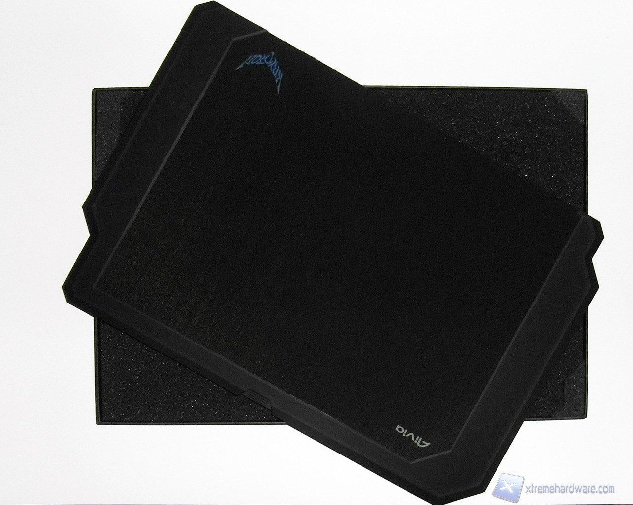 Aperta la scatola ci troviamo di fronte ad un mousepad di dimensioni generose; si tratta di un mousepad avente da un lato una superficie rigida, mentre dall'altro quella in tessuto, il tutto bloccato in una semi cornice gommosa che assicura una discreta stabilità sulla scrivania e dà motivo ai bordi non lineari.