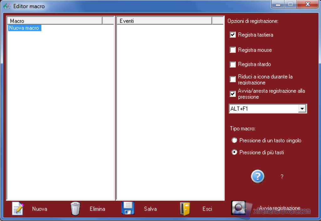 Registra ritardo: registra il ritardo fra la pressione e il rilascio di tasti e quello fra un clic e l'altro.