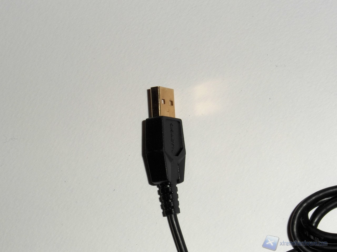 Un connettore placcato oro termina il cavo in gomma USB, dotato di filtro in ferrite.