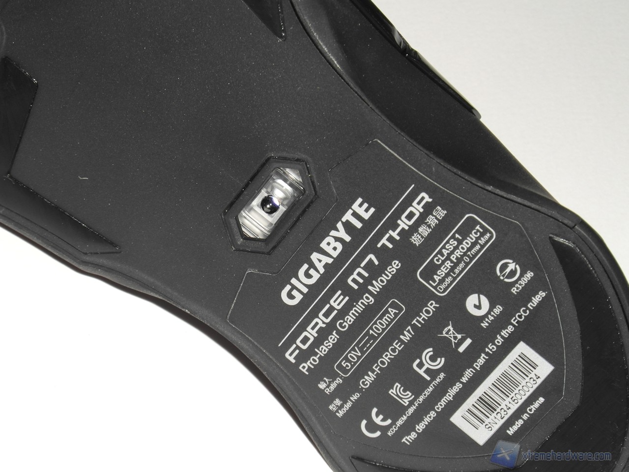 Liscia la parte destra del mouse, simmetrica alla sinistra. Anche la parte inferiore del Force M7 Thor non presenta particolari soluzioni, troviamo collocato, infatti, solamente il sensore laser.
