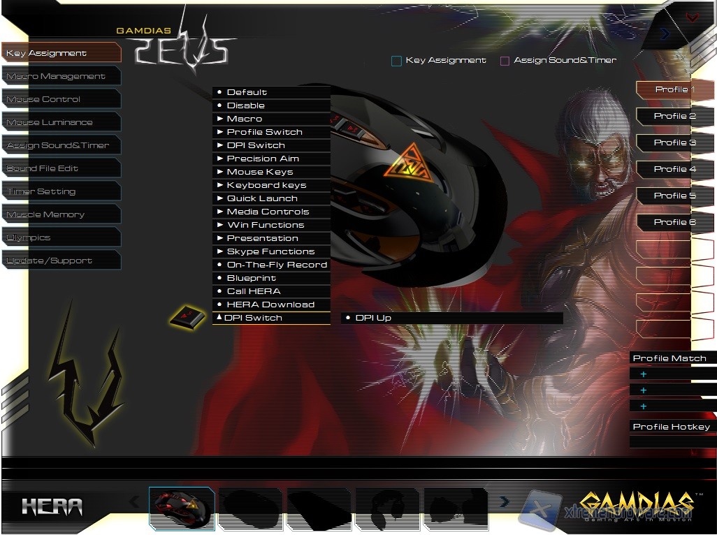 Il primo Menù è “Key Assignment” dove avremo modo di configurare un qualsiasi pulsante per eseguire una macro o un cambio profilo o settare un tasto multimediale o ancora avviare ad esempio Skype e così via. Tramite il processore 32-bit ARM integrato anche in questo mouse, avremo modo di eseguire qualsiasi azione e di personalizzare in modo completo il mouse secondo i nostri utilizzi. Questo primo Menù è molto completo e facile da comprendere. Ricordiamo che i profili verranno salvati immediatamente nella memoria On-Board da 512KB. I profili possono essere rinominati, messi di default, esportati o sostituiti.