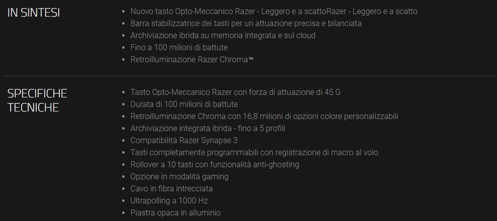 Procediamo ad elencare brevemente le caratteristiche della tastiera Razer Huntsman.