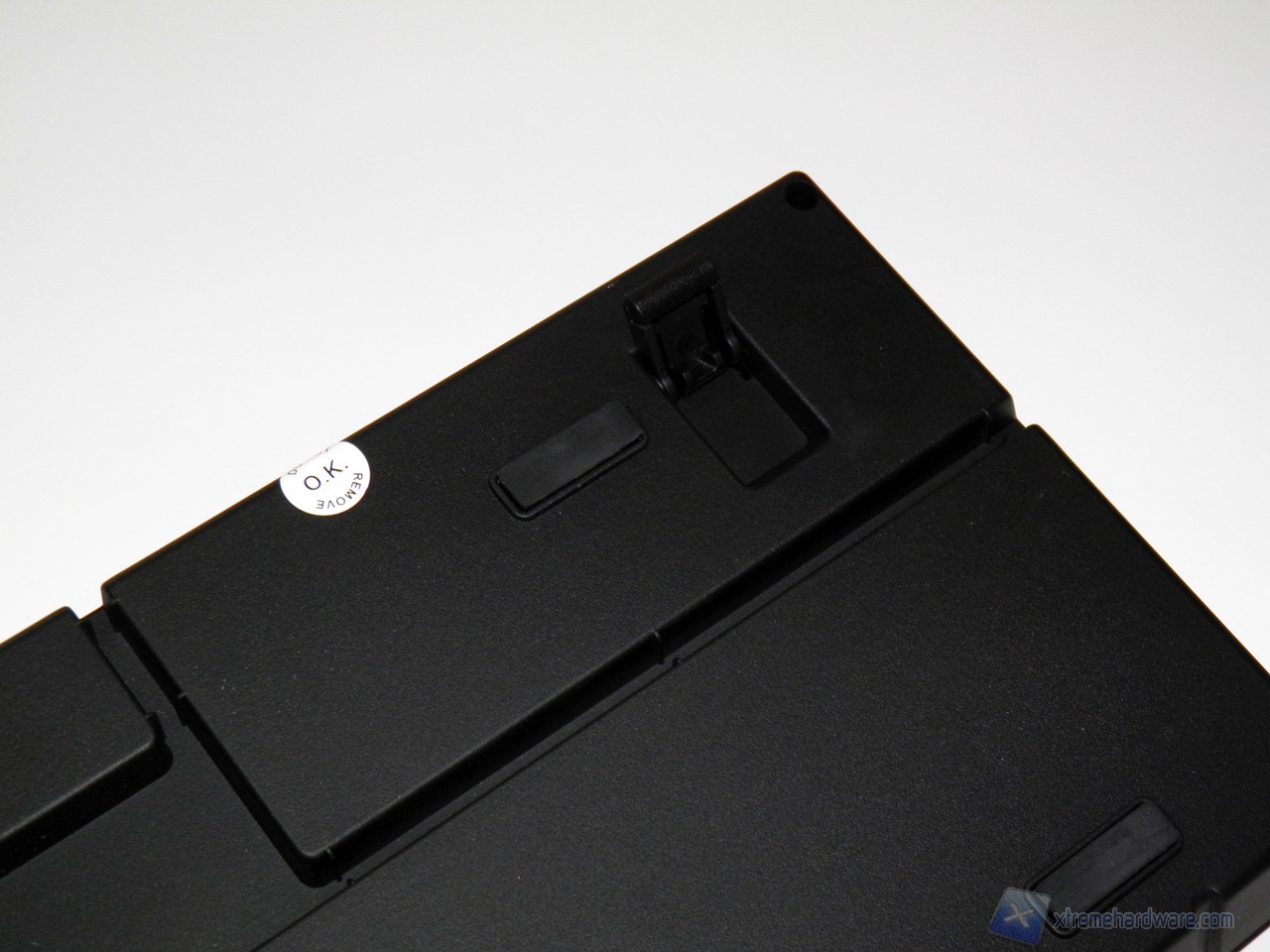 Il connettore USB è posto sotto la tastiera, al centro, ed è possibile installare e bloccare il cavo in tre modi diversi, per far sì che esca nel lato più comodo in base alle proprie esigenze. Posteriormente sono presenti i due piedini per regolare l’inclinazione.