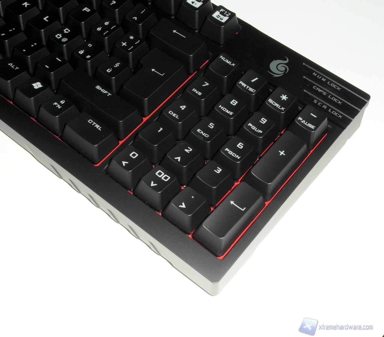 Lo switch funzionale tra i due blocchi logici è reso possibile dal solito tasto NUMLK (o Bloc Num su altre tastiere) che ci permette di attivare o disattivare il tastierino numerico. La retroilluminazione dei tasti direzionali dipende dalla loro attivazione.