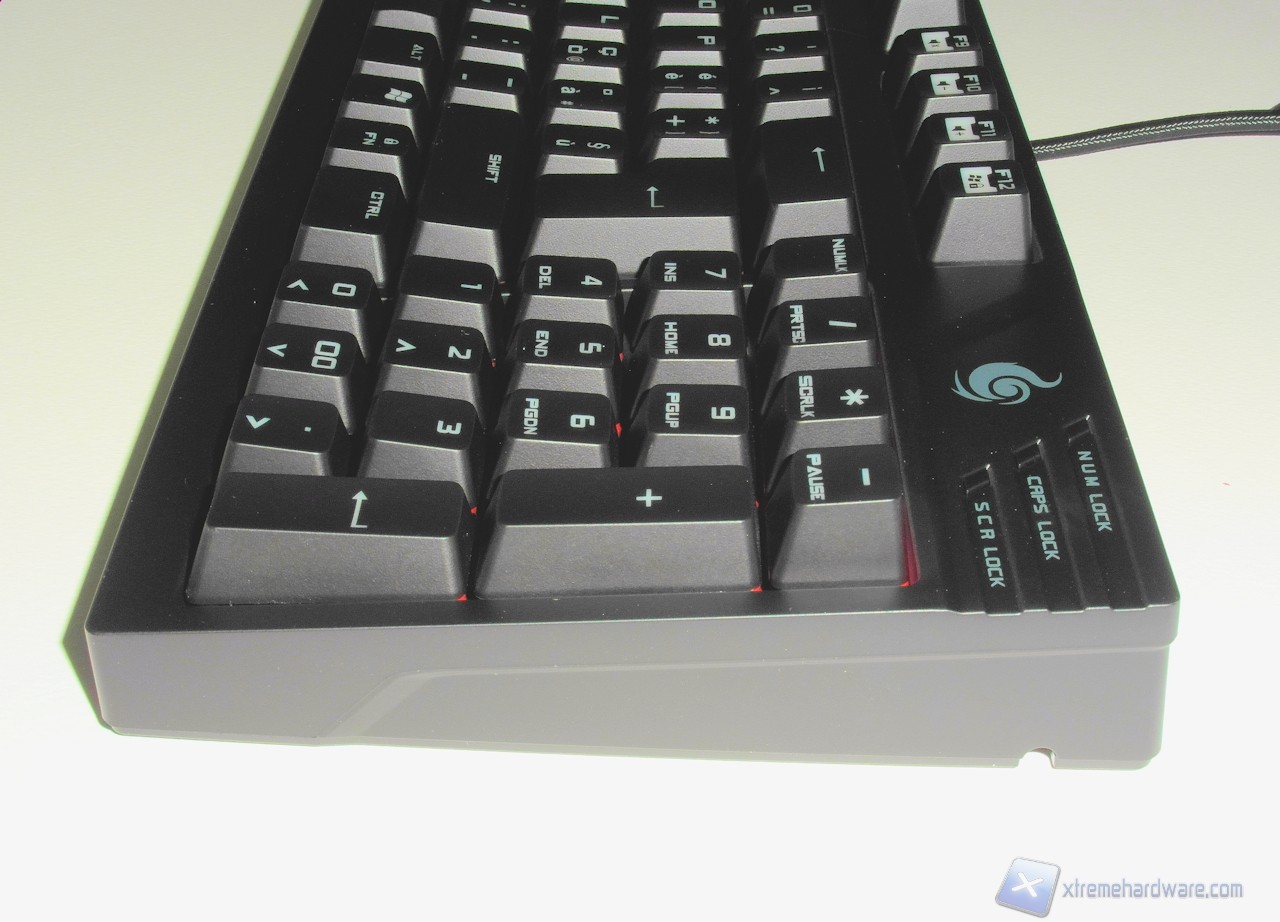 Vista dall'alto la tastiera si caratterizza subito per il particolare layout. Nella parte destra possiamo infatti notare qualcosa di insolito, ovvero il tastierino numerico integrato nei tasti tipicamente posti alla sua sinistra. La disposizione dei tasti direzionali mantiene la forma classica su due linee (i tasti direzionali sono presenti normalmente nel tastierino numerico ma disposti a croce), mentre sopra troviamo il blocco tasti che comprende DEL, PGUP, PGDW etc.