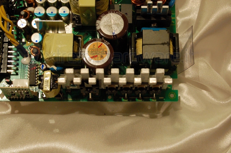 Come si può ben vedere, questa è in realtà l’unica sezione in cui venga utilizzato un dissipatore di discrete dimensioni, come quelli che siamo abituati a vedere all’interno di una psu standard.