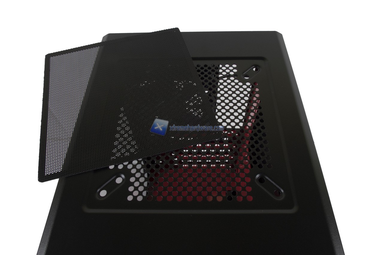 Verso il lato posteriore troviamo una griglia con relativo filtro antipolvere removibile. Griglia che ci permetterà di installare una ventola da 120 mm o 140 mm.