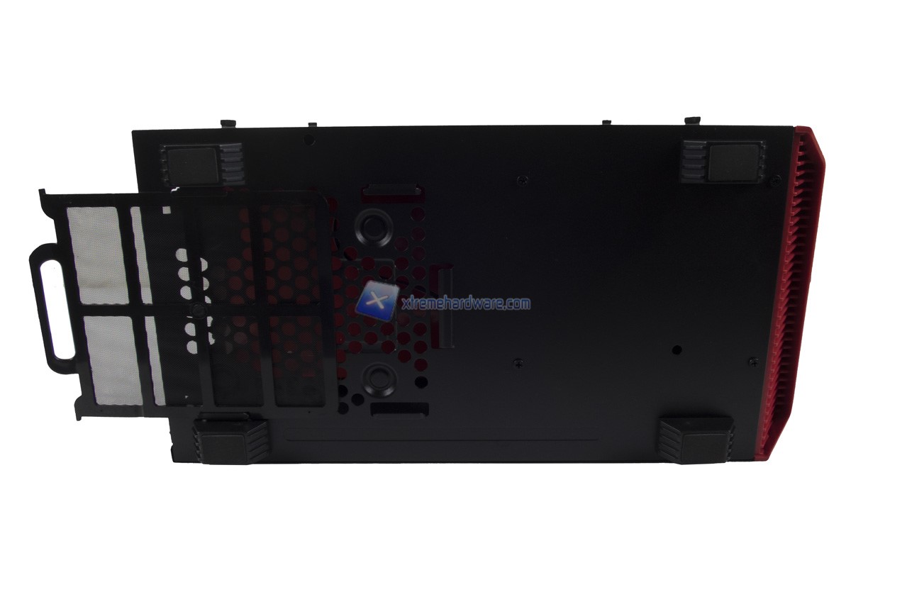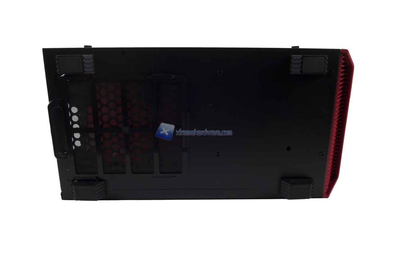 Capovolto il case osserviamo la presenza di quattro piedini in plastica con inserto gommato.
