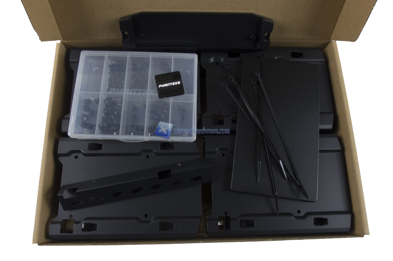 Una volta aperta la confezione ed estratto possiamo notare come il case sia ospitato non solo in un telo di colore nero ma anche sorretto da due robuste e generose sagoma di gomma espansa e cartone. Ciò a garantire l’integrità durante il trasporto.