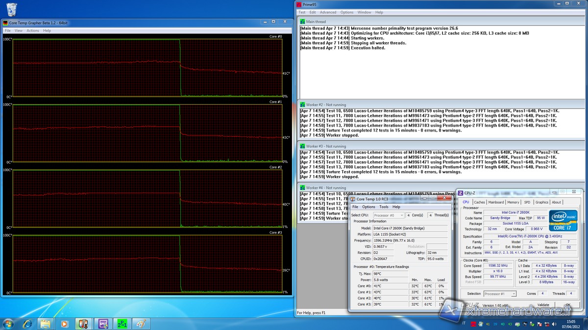 Una volta fermato il test con Prime95 occorono più di 10 min. affinchè le temperature tornino in una situazione di norma, rispetto quindi al caso precedente un tempo circa doppio.