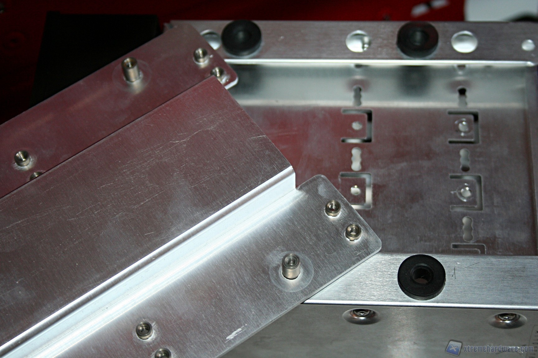 Fatto questo consigliamo l’installazione dei dischi rigidi, facendo attenzione a posizionarli in serie nella struttura predisposta. Fatto questo sarà necessario montare il lettore DVD: dovrete togliere le mascherine frontali e sostituirle con l’unità ottica, per poi riavvitare e serrare lateralmente. Fatto questo, si passerà all’installazione della scheda madre. Se si possiede un dissipatore Intel, tramite il solito sistema push-pin, sarà possibile installarlo successivamente, altrimenti se volete potete già procedere ad installare il backplate del dissipatore della CPU, facendo attenzione a stendere un sottile velo di pasta termica alla base della CPU stessa. In sostanza, se la vostra scheda madre non è mini-ITX, dovrete prima montare i distanziatori nei fori per il formato ATX, serrarli molto bene – consigliamo una pinza larga 1cm durante quest’operazione, su ogni cabinet – e poi apporre la scheda madre, serrandola con le viti fornite nella confezione. Se avete un dissipatore aftermarket potete utilizzare il foro posteriore, che è molto pratico e vi aiuterà non poco all’atto della procedura. Dopo aver montato il dissipatore sulla scheda madre, sarà necessario montare la scheda video, le RAM ed infine procedere all’assemblaggio dei cavi di connessione del cabinet alla scheda madre. Per fare un lavoro pulito consigliamo l’utilizzo delle fascette restringenti fornite in bundle. A titolo informativo riportiamo il cablaggio eseguito posteriormente, ma state certi che con una maggiore cura ed attenzione ai particolari il lavoro sarà ancora migliore. Terminata l’operazione vi consigliamo di connettere tutte le ventole che avete a disposizione. Ecco qui come si presenterà il case a lavoro terminato.