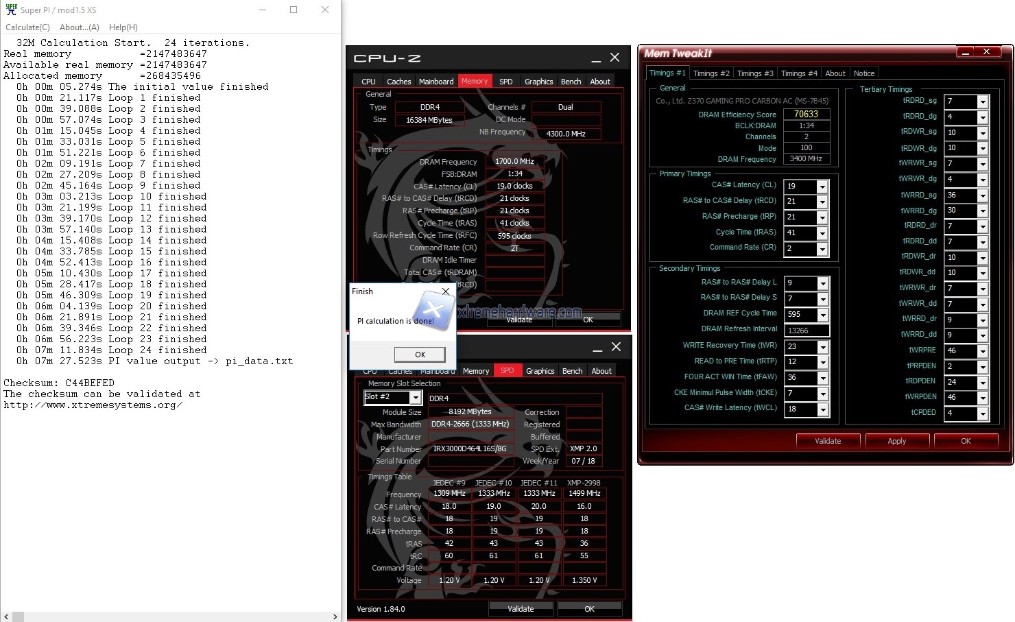 Questo tool sollecita il processore nel calcolo del PiGrego consentendo di calcolare fino a 32 milioni di decimali (Super PI 32M). Logicamente più è esoso il calcolo, più lo stadio CPU-RAM viene sollecitato. Questi i risultati raggiunti: