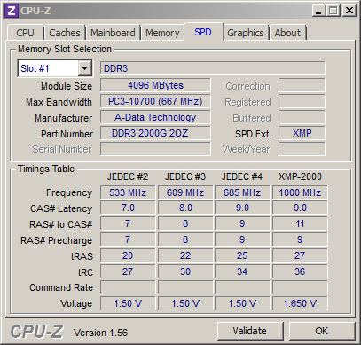 Come già detto in precedenza, le configurazioni Sandy Bridge non permettono di settare le ram a 2000MHz quindi il sistema imposta automaticamente le ram a 1866 MHz con timings di 9-11-9-27 e voltaggio di 1.65V.