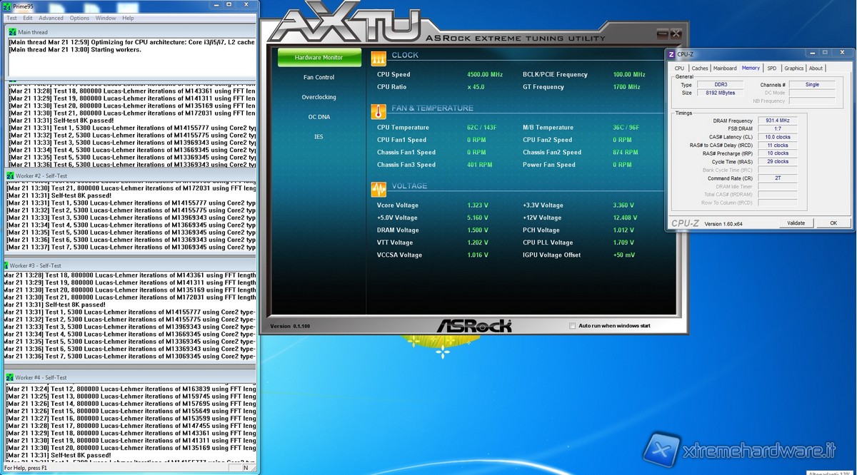 Mantenendo una frequenza invariata per  il base clock (bclk), abbiamo aumentato la frequenza delle nostre memorie a 1866 MHz, utilizzando il moltiplicatore della memoria. Abbiamo impostato un Vdimm di 1,5V, dato che non era possibile salire molto oltre per evitare problemi col nostro memory controller, pur tollerando queste memorie voltaggi ben più elevati. Purtroppo non è stato possibile neppure effettuare il BOOT di sistema mantenendo invariati i timings. Rilassandoli, invece, dopo vari tentativi, abbiamo raggiunto la stabilità a 1866 MHz con timings di 10-11-10-29, come è possibile notare nell'immagine seguente.