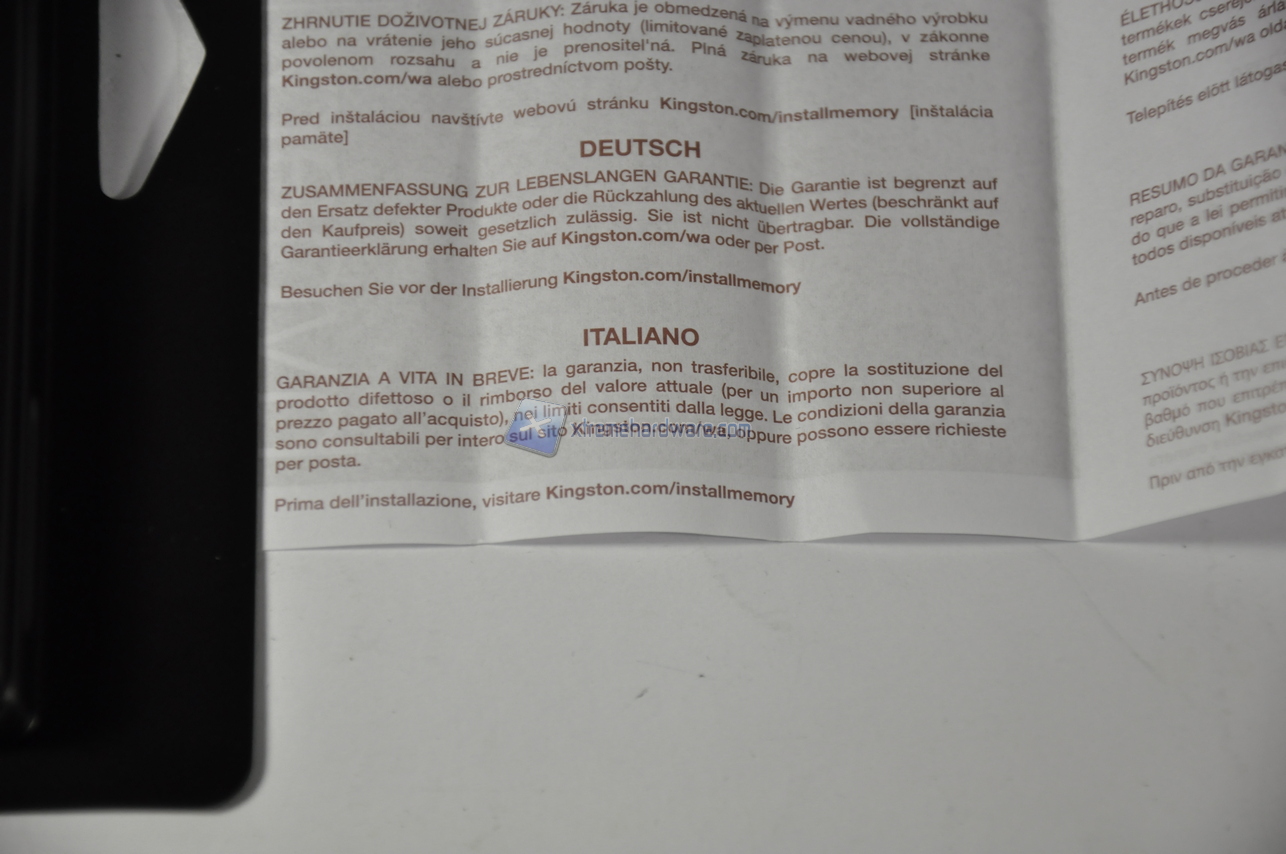 Le memorie sono accompagnate da una breve guida multilingua per l’installazione e le condizioni sulla garanzia.