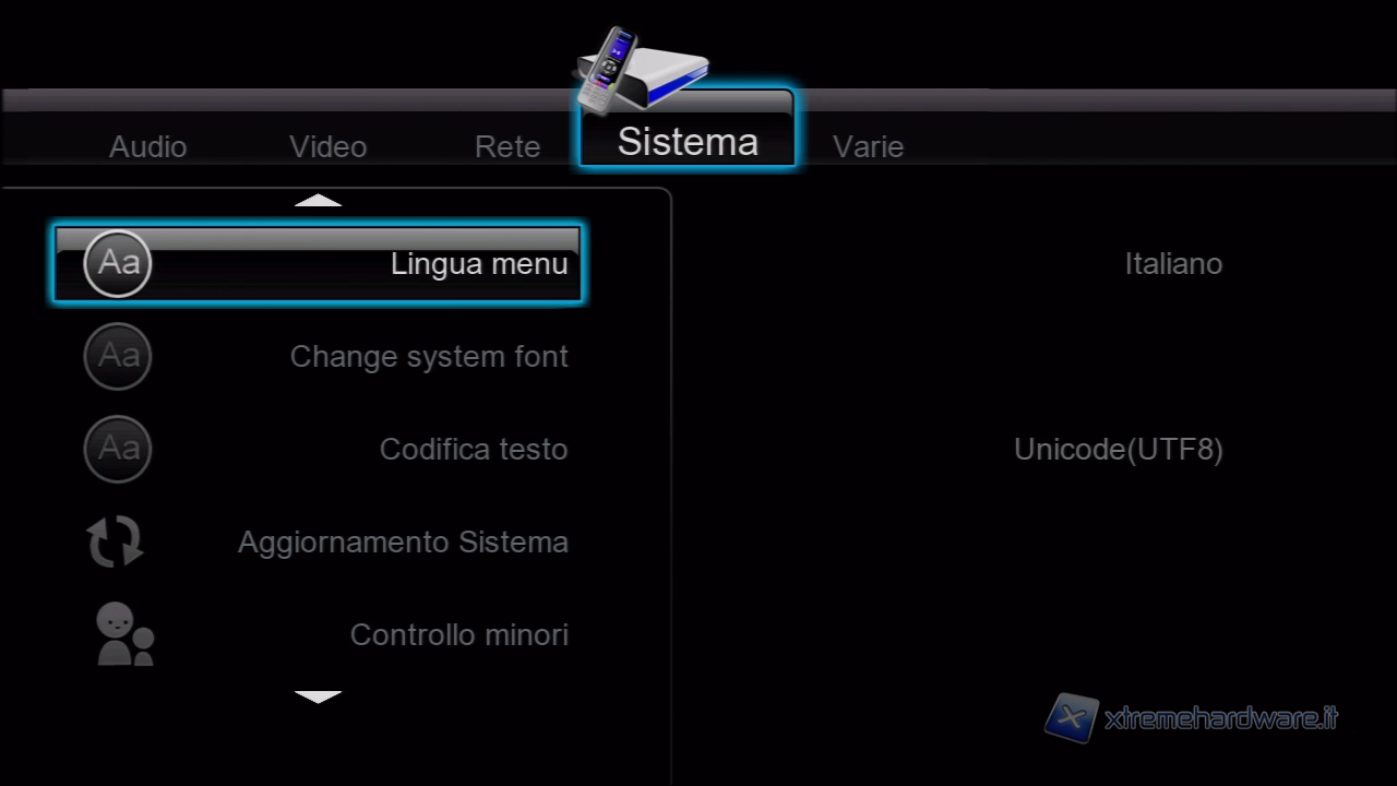 Ovviamente è da qui che si può aggiornare il sistema via internet con la pressione di un tasto come ormai per tutti i dispositivi di questo tipo.