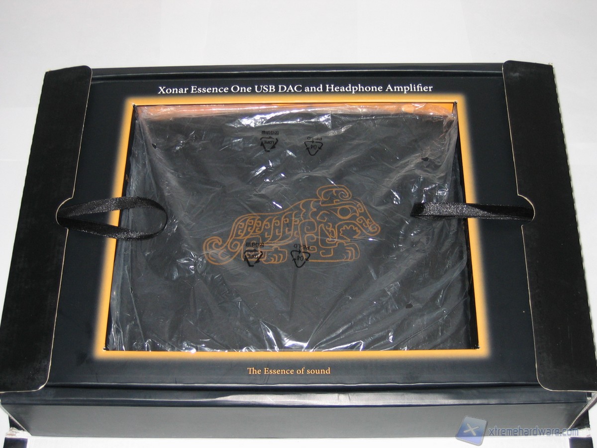 La Xonar Essence One viene venduta in un’elegante scatola monolitica nera con in bella evidenza sulla parte superiore il classico simbolo della tigre stilizzata che rappresenta la linea di prodotti Xonar; all’interno risulta ben protetta dai possibili urti in caso di trasporto da due tappetini gommosi sopra e sotto lo chassis, mentre ai lati troviamo due box contenenti gli accessori. Il bundle comprende il cavo di alimentazione, il cavo USB, un adattatore per cuffie con jack da 3.5mm. Oltre a ciò, troviamo il manuale di installazione ed uso, il CD contenente i driver e per finire l’APT (Audio Precision Test ). L’APT è un rapporto sui test con le misure che ogni singola scheda deve superare prima di essere venduto, ovvero una sorta di certificazione di controllo qualità del prodotto con all’interno varie spiegazioni tecniche sull’hardware usato.