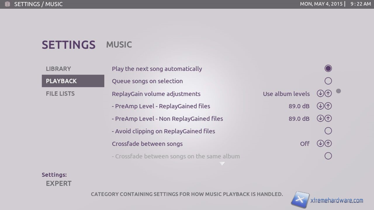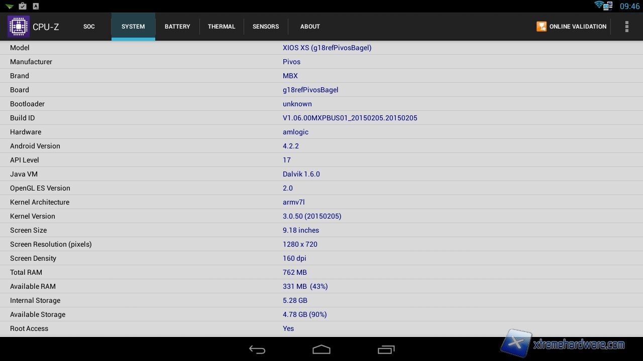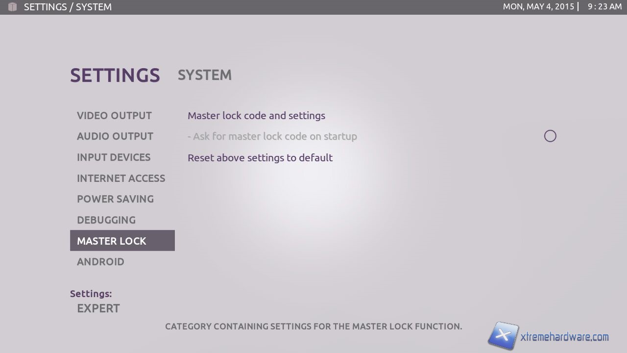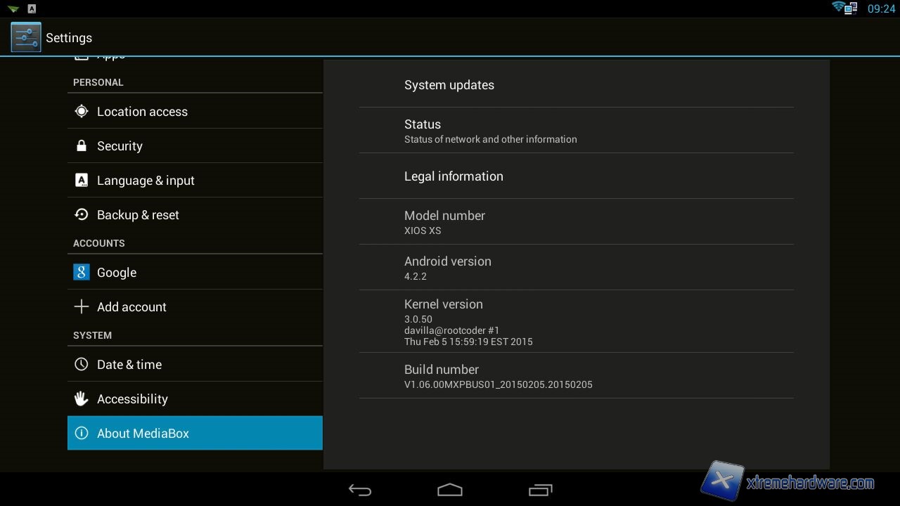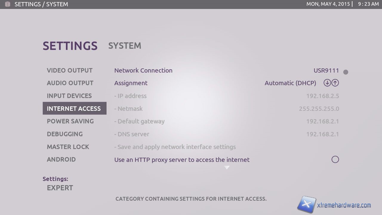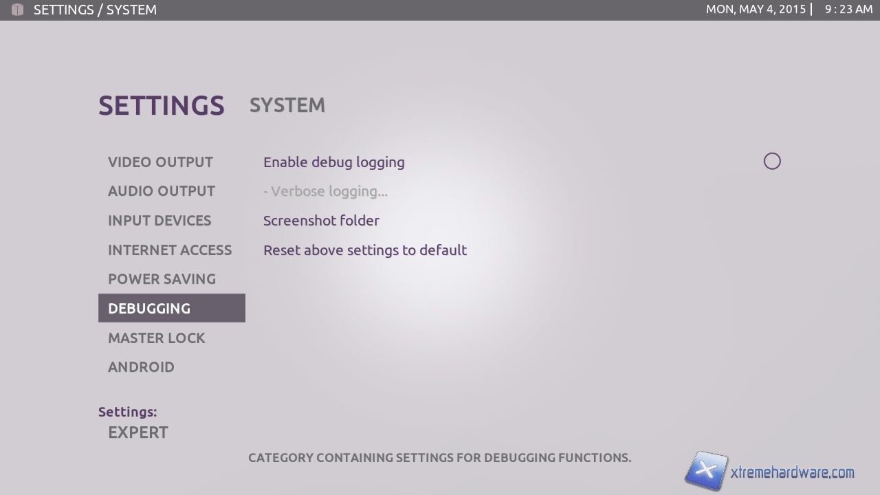 Da uno dei tanti Menù delle impostazioni potremo inoltre controllare l’hardware installato nello XIOS XS o controllare come se fosse un Task Manager la richiesta di risorse quali carico sulla CPU Dual Core (percentuale separata per Core) o Memoria Utilizzata o ancora lo spazio a disposizione, i dati inerenti la connessione, la temperature della CPU (espressa in gradi Fahrenheit) ed i dati della piattaforma impiegata nel media player.