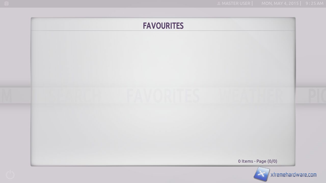 Avviato lo XIOS XS ci troviamo di fronte un’interfaccia semplice ed elegante (tutta questione della skin di default comunque settabile). L’interfaccia si caratterizza inoltre per la presenza di una banda centrale sulla quale troviamo i vari Menù che contengono al loro interno le sottocategorie. Questo fa sì che possiamo avere un’interfaccia poco caotica e di immediato utilizzo. Inoltre avremo la possibilità di creare nuove voci con relative sottocategorie. Ad esempio potremo creare un Menù chiamato YouTube dal quale potremo richiamare gli streaming di video o video salvati. Nel dettaglio troviamo comunque 8 Menù nell’ordine ‘’Music’’, ‘’Videos’’, ‘’Internet’’, ‘’APPS’’, ‘’System’’, ‘’Search’’, ‘’Favorites’’, ‘’Weather’’. Da questi potremo accedere alle relative opzioni o funzioni con le quali personalizzare le playlist, l’ordine di esecuzione e molto altro.