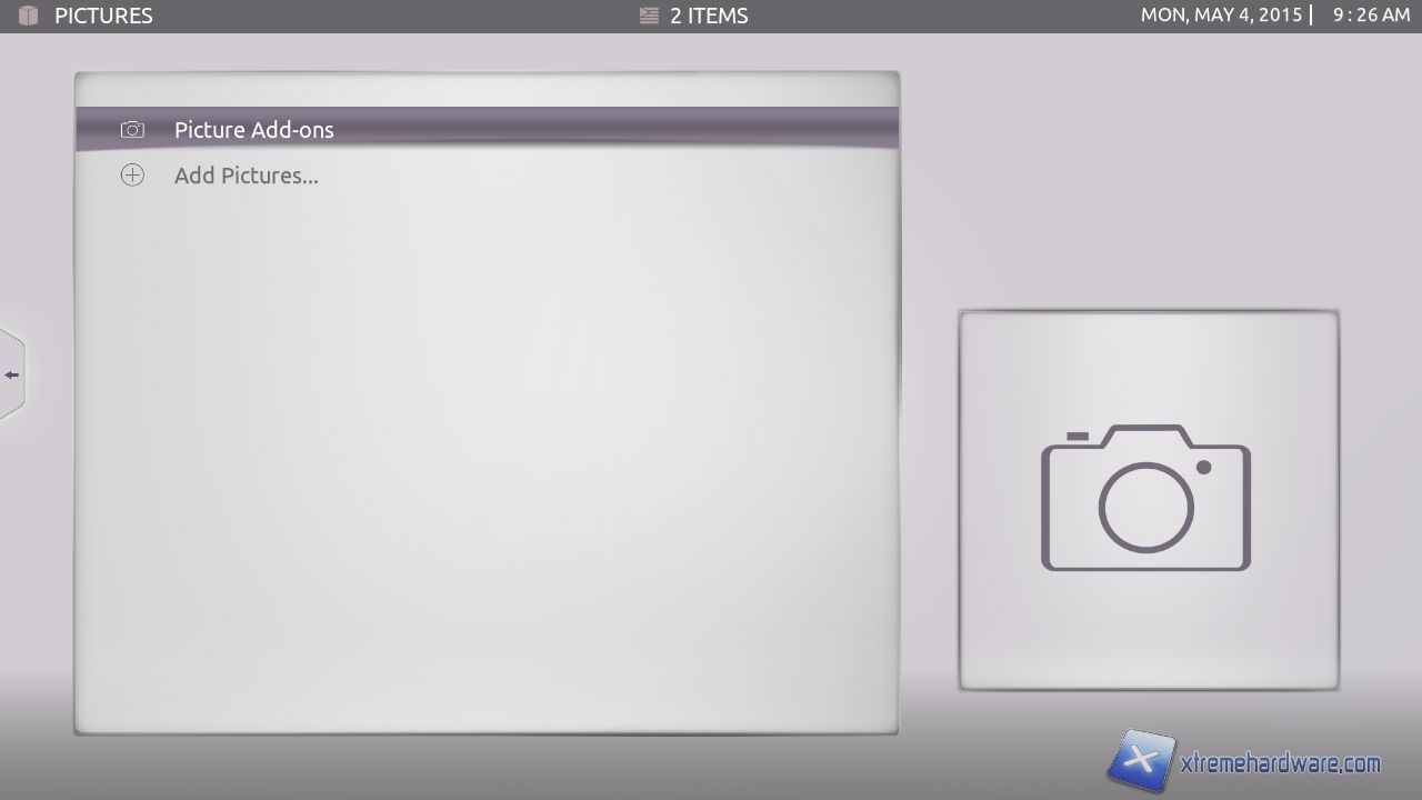 Invece per i Menù ‘’Pictures’’ e ‘’Videos’’ una volta cliccato accederemo a dei sottomenù dai quali poter accedere alle nostre playlist ordinabili tramite i le opzioni laterali o ancora accedere a degli add-ons e scaricare nuove funzionalità che potrebbero sempre essere di nostro interesse.