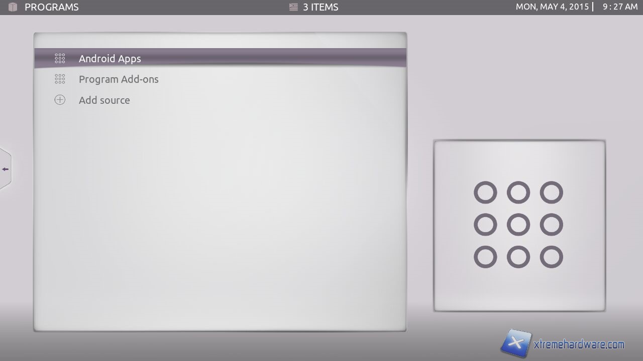 A seguire anche il Menù ‘’Program’’ utilizza lo stesso sistema di catalogazione e implementazione di add-ons. Questa volta però i programmi scaricati e scaricabili dal Play Store di Google andranno direttamente nella cartella Android apps in modo da averli separati dal resto degli add-ons generici.