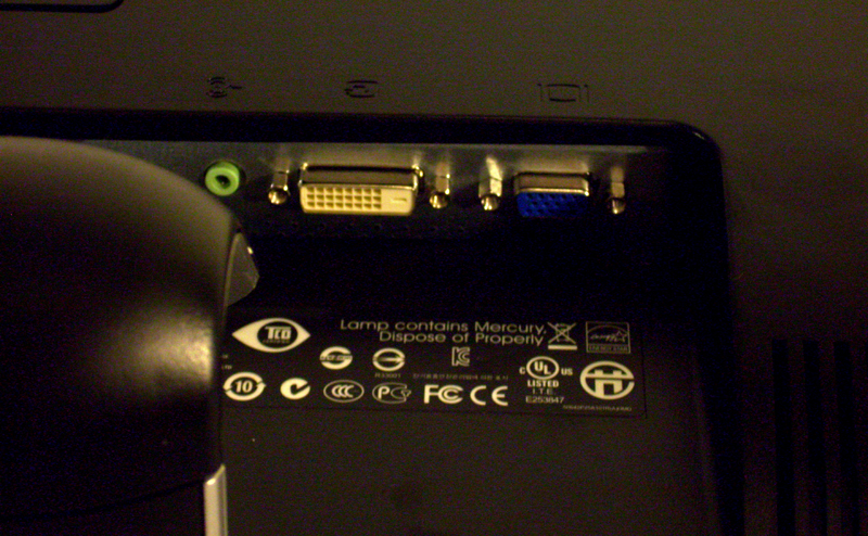 Le connessioni presenti nel retro del monitor sono una VGA, una DVI e un ingresso jack per l’audio.