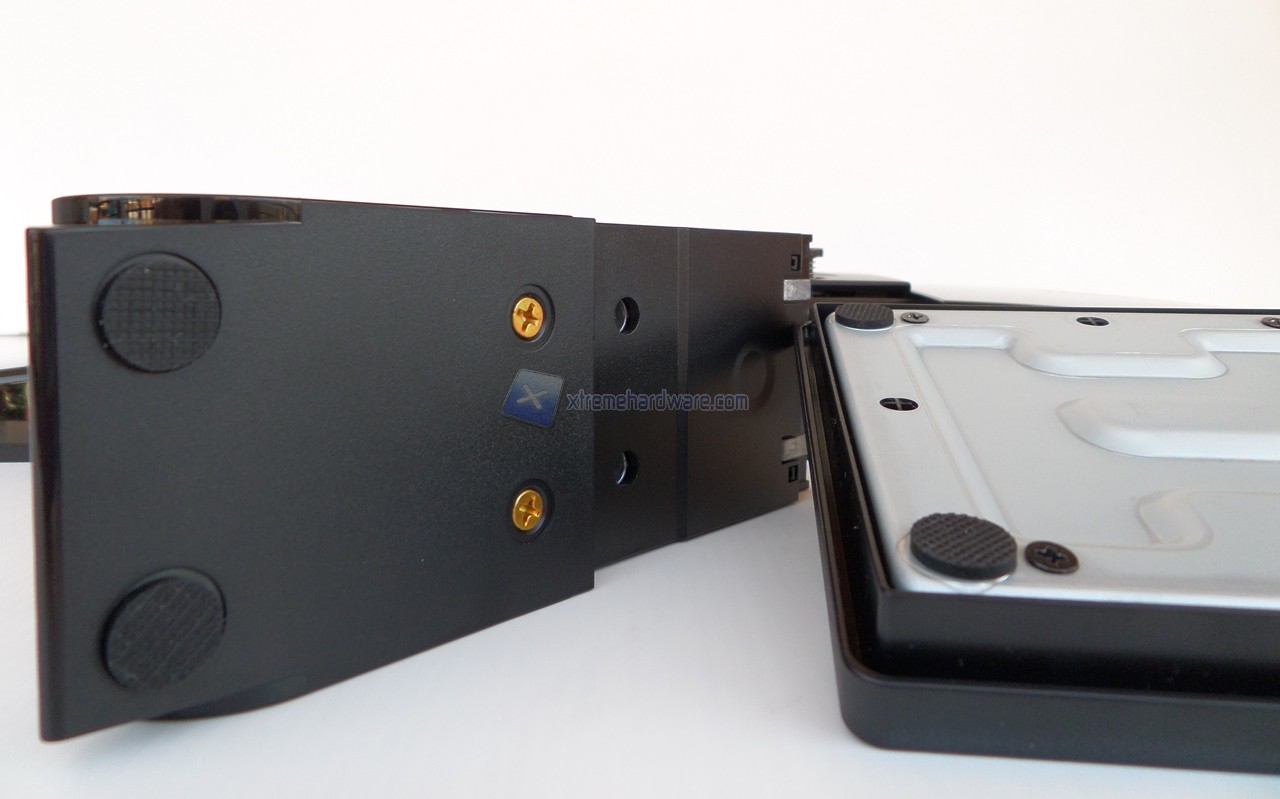 Procedendo al montaggio della base di sostegno, possiamo dapprima far scorrere il braccio lungo la guida della base stessa e fissarla con le due viti poste al disotto. Successivamente si potrà far scorrere la guida del braccio nell’apposita fessura del monitor, dove verrà fissata con una vite che stavolta necessiterà di un cacciavite per imprimere la giusta pressione.
