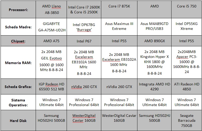 Di seguito riportiamo la tabella contenente le specifiche tecniche del sistema utilizzato per effettuare I test del processore.