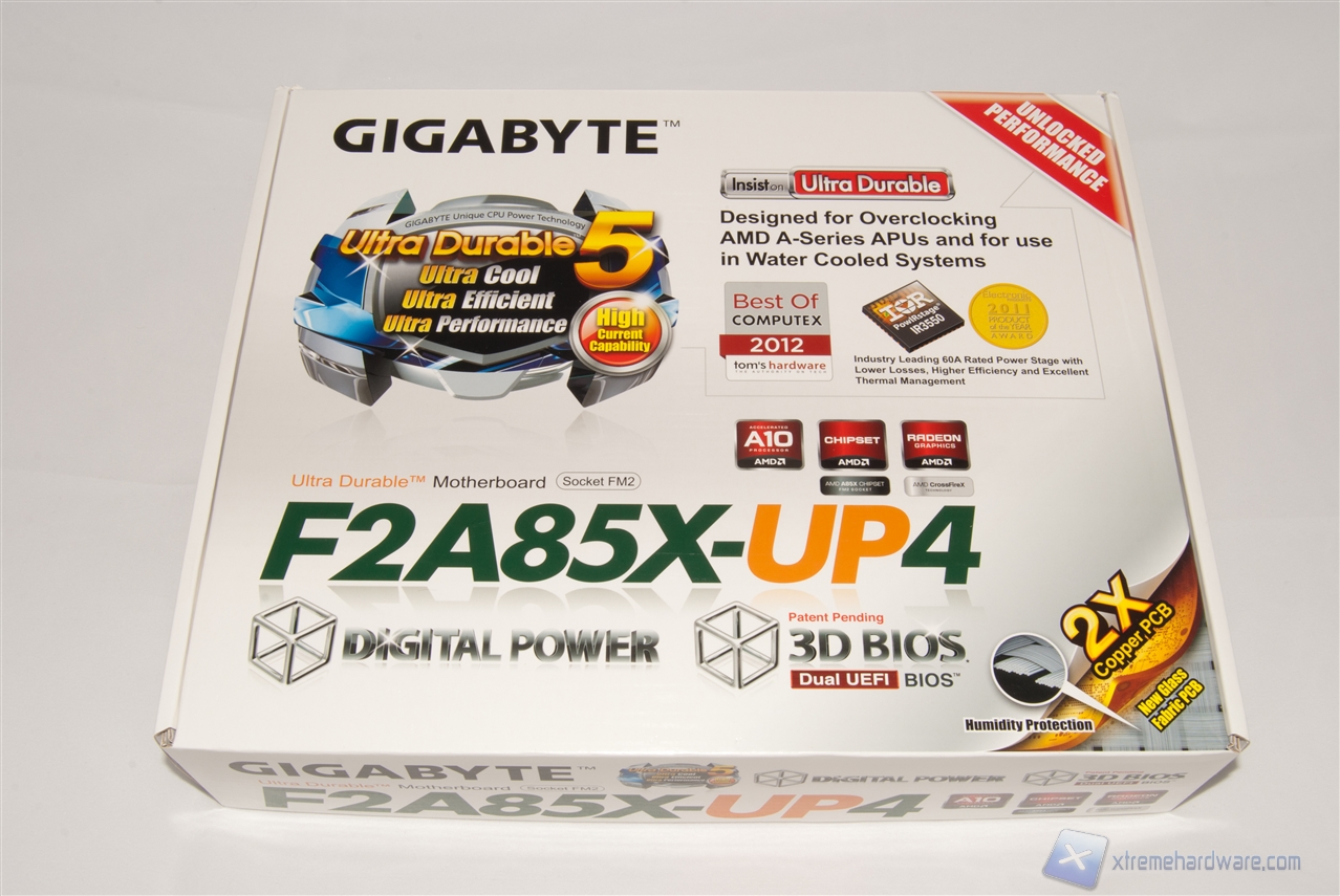 La scheda madre che andremo ad utilizzare per testare le performance e le caratteristiche del nuovo AMD A10-5800K proviene direttamente da Taiwan e si tratta di una splendida GIGABYTE F2A85X-UP4 dotata dell’ultimo chipset A85X in grado di sfruttare appieno le caratteristiche dei nuovi processori A-series e dei futuri Athlon, anch’essi su socket FM2.