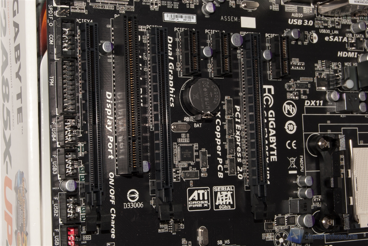 La nuova GIGABYTE F2A85X-UP4 è dotata di numerosi slot di espansione; possiamo infatti trovare 1X PCI-E x16, 1X PCI-E x8, 1X PCI-E 4X, 3X PCI-E x1 e uno slot PCI.