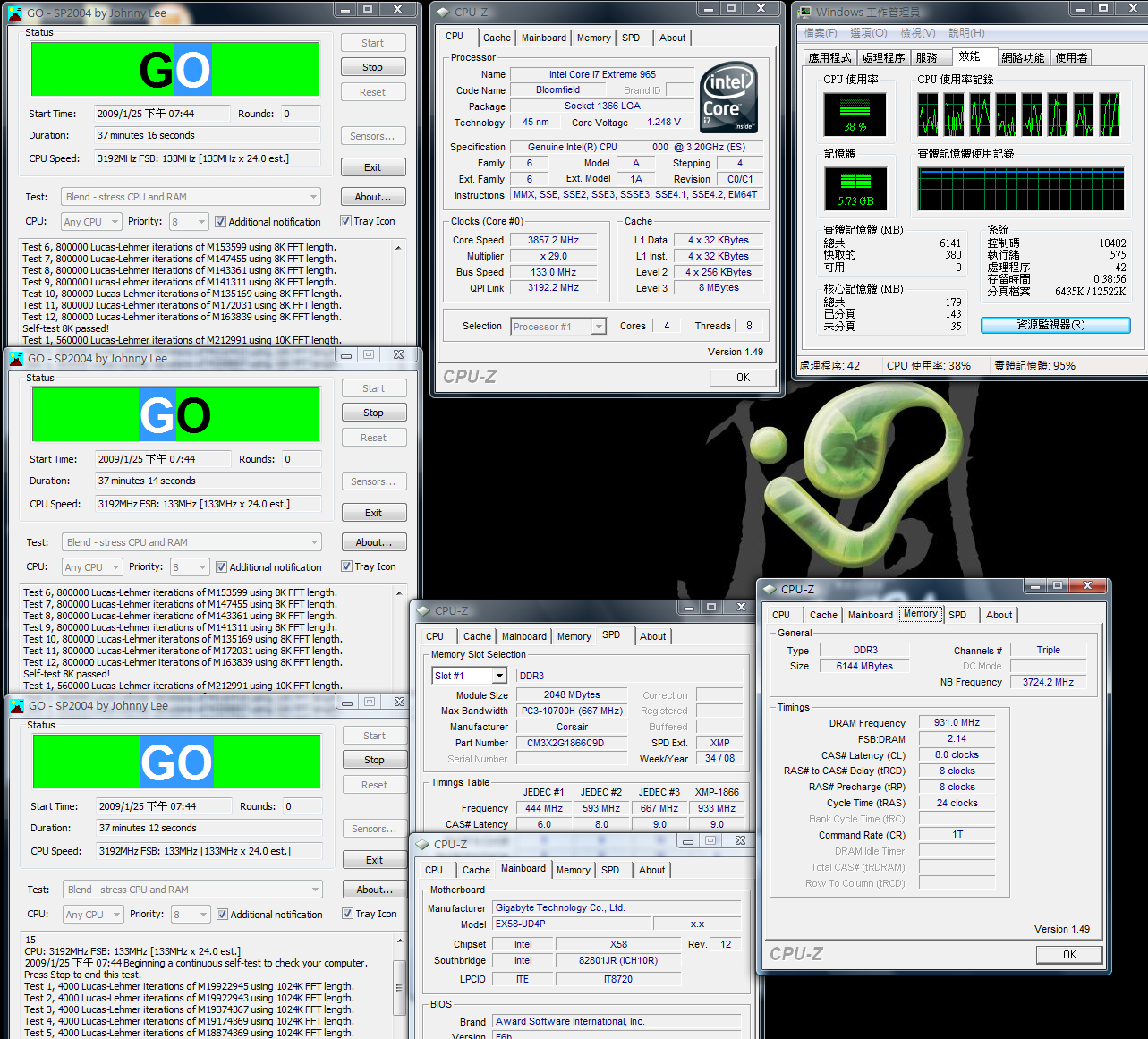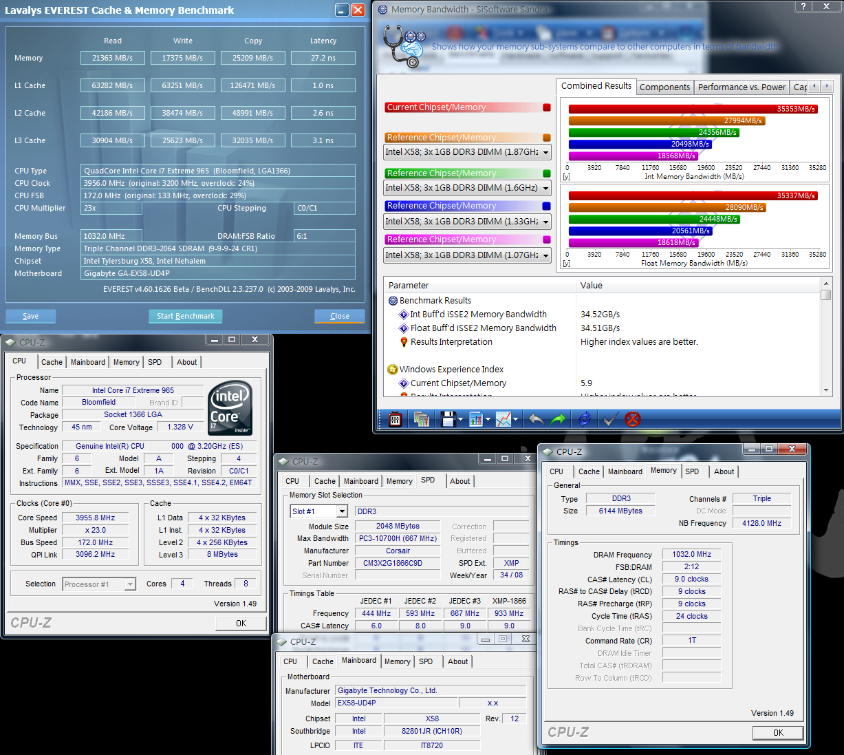 Grazie al supporto 3 channel DDR3 si hanno le migliori performance, infatti si raddoppiano/triplicano le prestazioni rispetto alle precedenti piattaforme DDR2/DDR3. Questa UDP4 si comporta molto bene nell'overclock delle DDR3, per gli score precedenti sono bastati 1.6~1.7V. Anche la banda passante ha raggiunto ottimi punteggi.