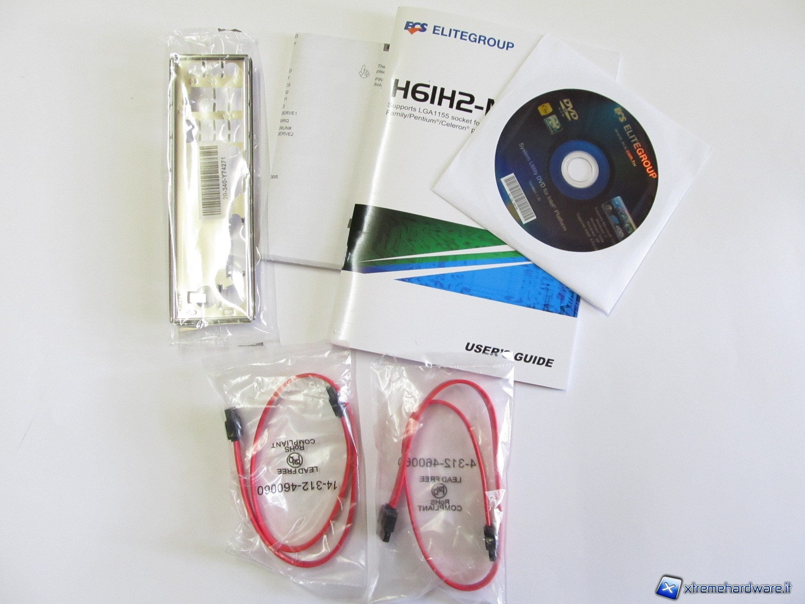 Procedendo all’unboxing osserviamo la dotazione (bundle) che comprende due cavi SATA, CD di installazione, mascherina per il pannello posteriore I/O e 2 manuali per l’utente.