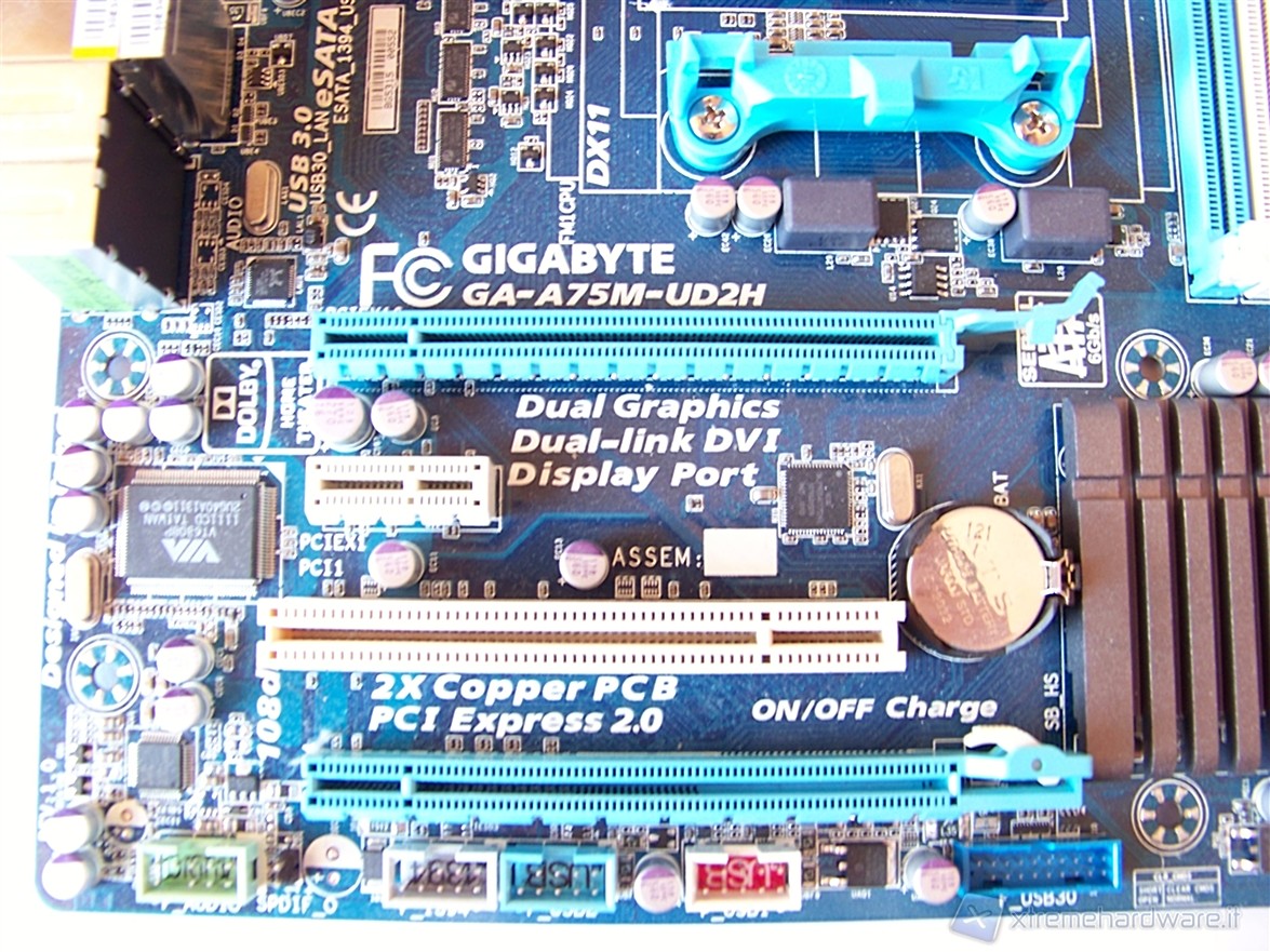 Il chipset AMD A75 è posizionato nella parte inferiore della scheda madre ed è ricoperto da un dissipatore di colore grigio scuro riportante il nome dell’azienda.